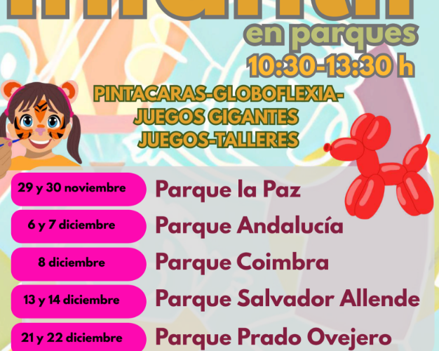 · Los niños podrán disfrutar de actividades gratuitas, organizadas por el Ayuntamiento de Móstoles, como pintacaras, globoflexia, juegos gigantes o juegos-talleres en diferentes parques de la localidad, en horario de 10:30 h a 13:30 h. Móstoles, 28 de noviembre.- El Ayuntamiento de ...