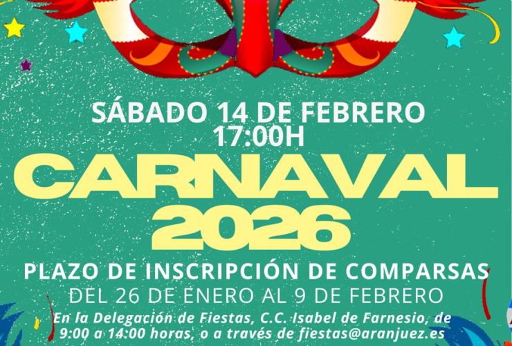 ·Inscripciones hasta el 9 de febrero, incluido, en la Delegación de Fiestas, ubicada en el Centro Cultural Isabel de Farnesio, o a través del correo electrónico fiestas@aranjuez.es· La reunión organizativa, a la que deberá venir un representante, mayor de edad, ...