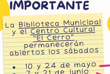 El Centro Cultural «El Cerro» abrirá también los sábados durante mayo y junio