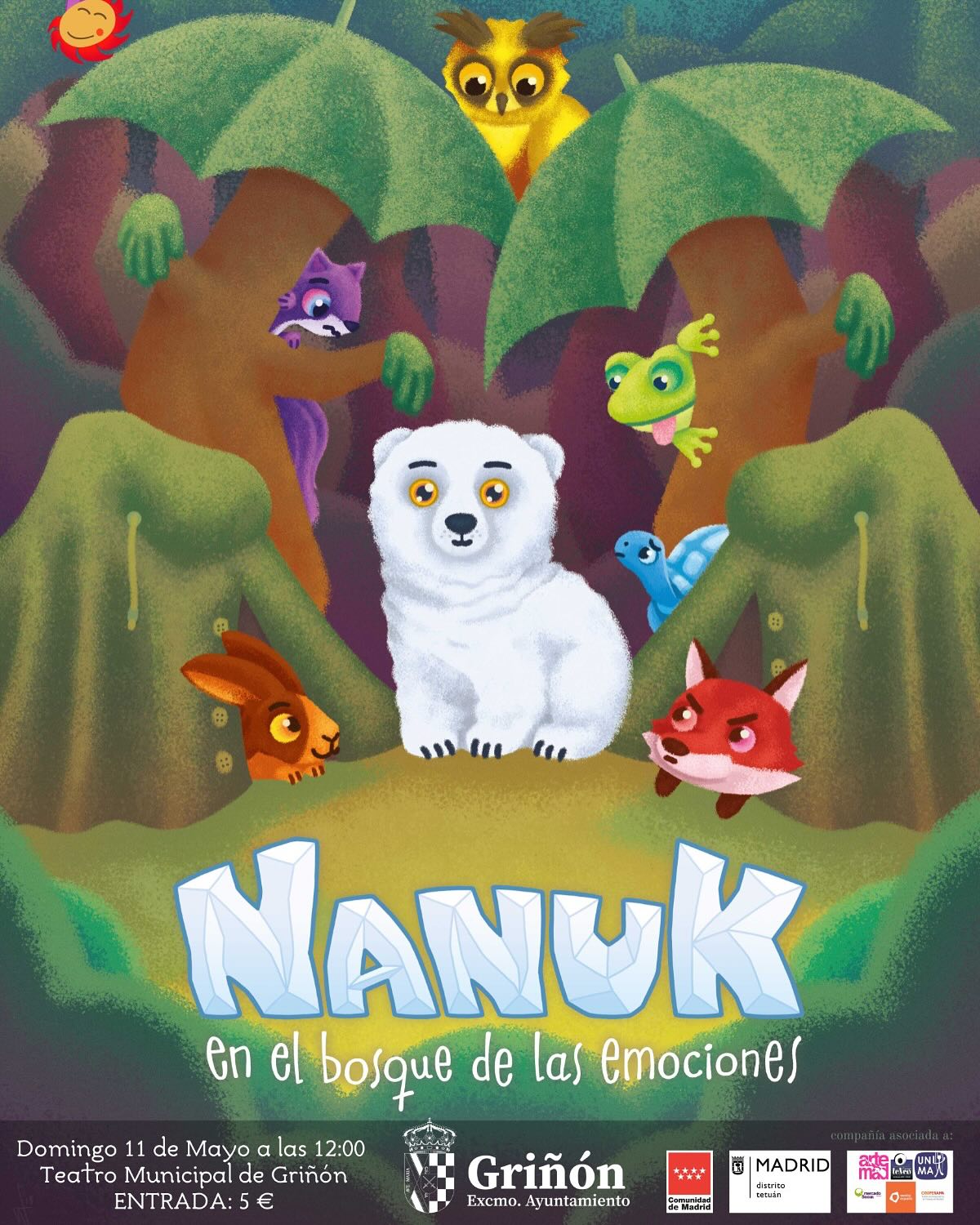 El Ayuntamiento de Griñón invita a todos los vecinos y visitantes a disfrutar de una función única de teatro infantil, «Nanuk, el bosque de las emociones», una obra llena de magia y sentimiento.
