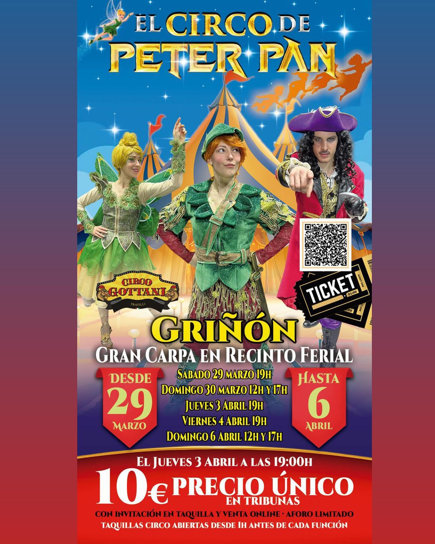 Griñón se convierte este fin de semana, del 4 al 6 de abril, en el escenario de una aventura fantástica con la llegada de El Circo de Peter Pan. Una gran carpa en el recinto ferial acoge un espectáculo único en el que la magia, la música y las acrobacias se combinan para ofrecer una experiencia inolvidable.