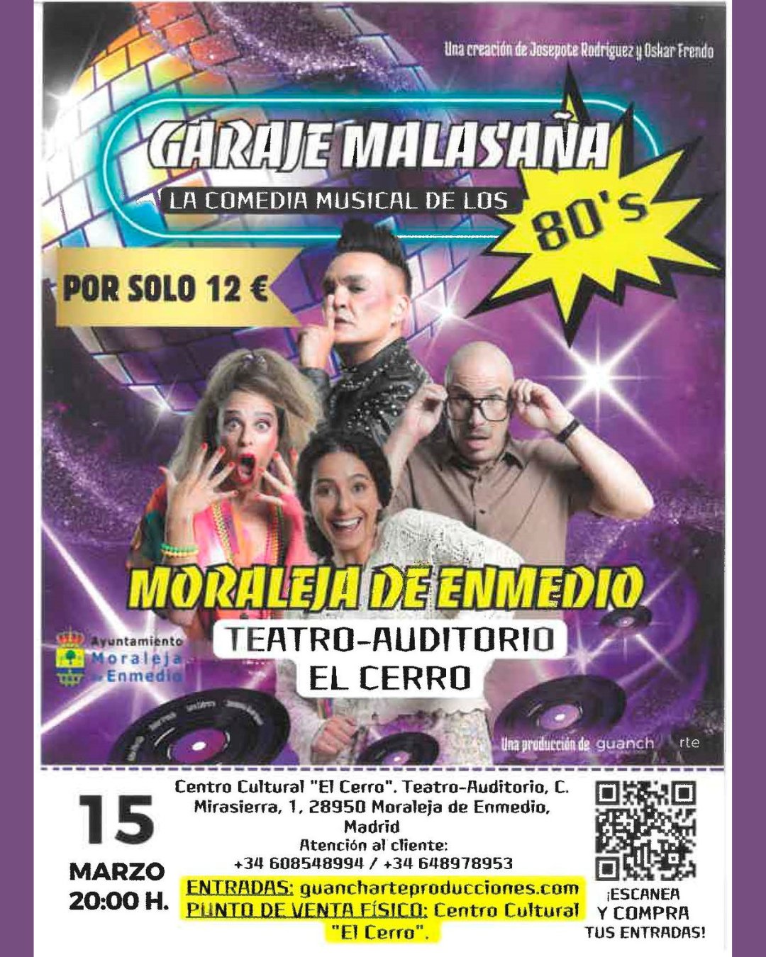 El próximo sábado 15 de marzo de 2025, el Auditorio y Centro Cultural El Cerro te invita a una experiencia única con la comedia musical G▲R▲JΕ M▲L▲S▲Ñ▲ 🎶🚗🎤. Esta divertida obra te transportará al garaje de un barrio de Malasaña en los años 80, donde el enredo, la música y los sueños de los protagonistas te harán cantar, bailar y vivir la esencia de una de las décadas más vibrantes.