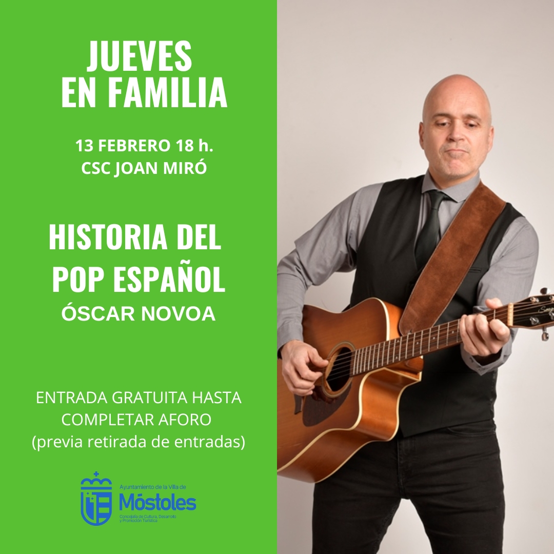 Y el Centro Sociocultural Joan Miró será este jueves, a las 18:00 h, el escenario que acogerá “Historia del pop español”, un espectáculo de música incluido en la programación de Jueves en Familia, protagonizado por el artista local Óscar Novoa. La entrada es gratuita, previa retirada de invitaciones en el propio centro desde el lunes de esta semana.