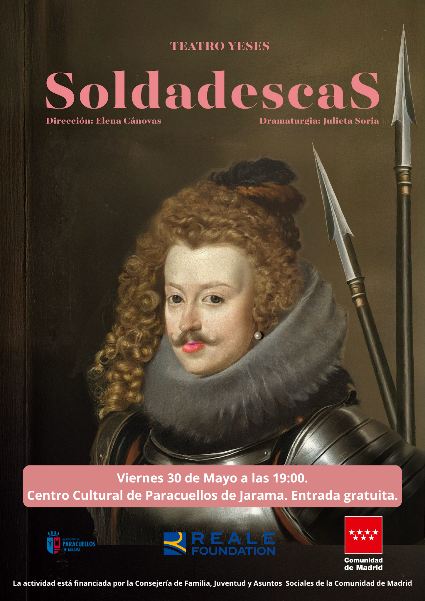 El viernes 30 de mayo a las 19:00 horas, el Centro Cultural de Paracuellos de Jarama (Ronda de las Cuestas, 39) acogerá la obra de teatro Soldadescas, a cargo de la veterana compañía teatral Yeses. La entrada será gratuita hasta completar el aforo.