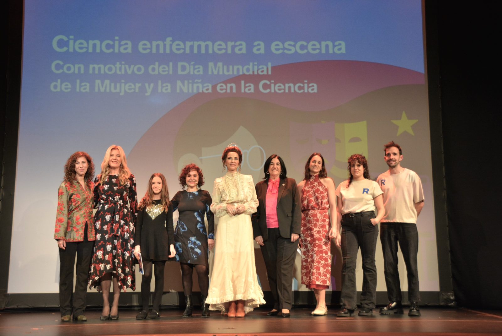 La puesta en escena contó con la participación de la periodista Graziella Almendral, quien, junto a una niña de 12 años, hiló el pasado, presente y futuro de la enfermería. Mónica Soria, actriz y enfermera, encarnó a la Reina Victoria Eugenia, resaltando su papel en la profesionalización del sector. Además, el dúo de improvisación No Solo Remón y Romera aportó un toque de humor, abordando de manera lúdica la realidad de la mujer en la ciencia.