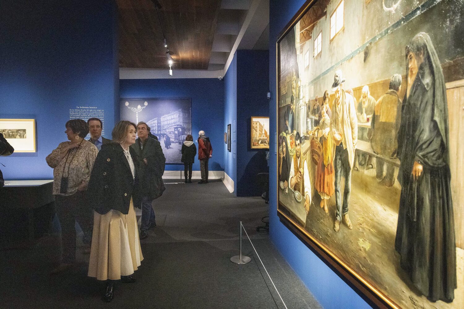 La exposición se estructura en cinco espacios, cada uno de ellos dedicado a diferentes momentos de la bohemia literaria. Comienza con ‘París: las primeras luces’, que transporta a los visitantes a la capital francesa, cuna de este estilo de vida, reflejado en obras como la ópera La Bohème y la zarzuela La golfemia. El segundo espacio, ‘El resplandor español’, nos sitúa en Madrid hacia 1840, cuando surgió la primera generación de bohemios en la ciudad. En ‘La bohemia heroica’, se explora el grupo de autores comprometidos que rechazaban los valores burgueses de la época.