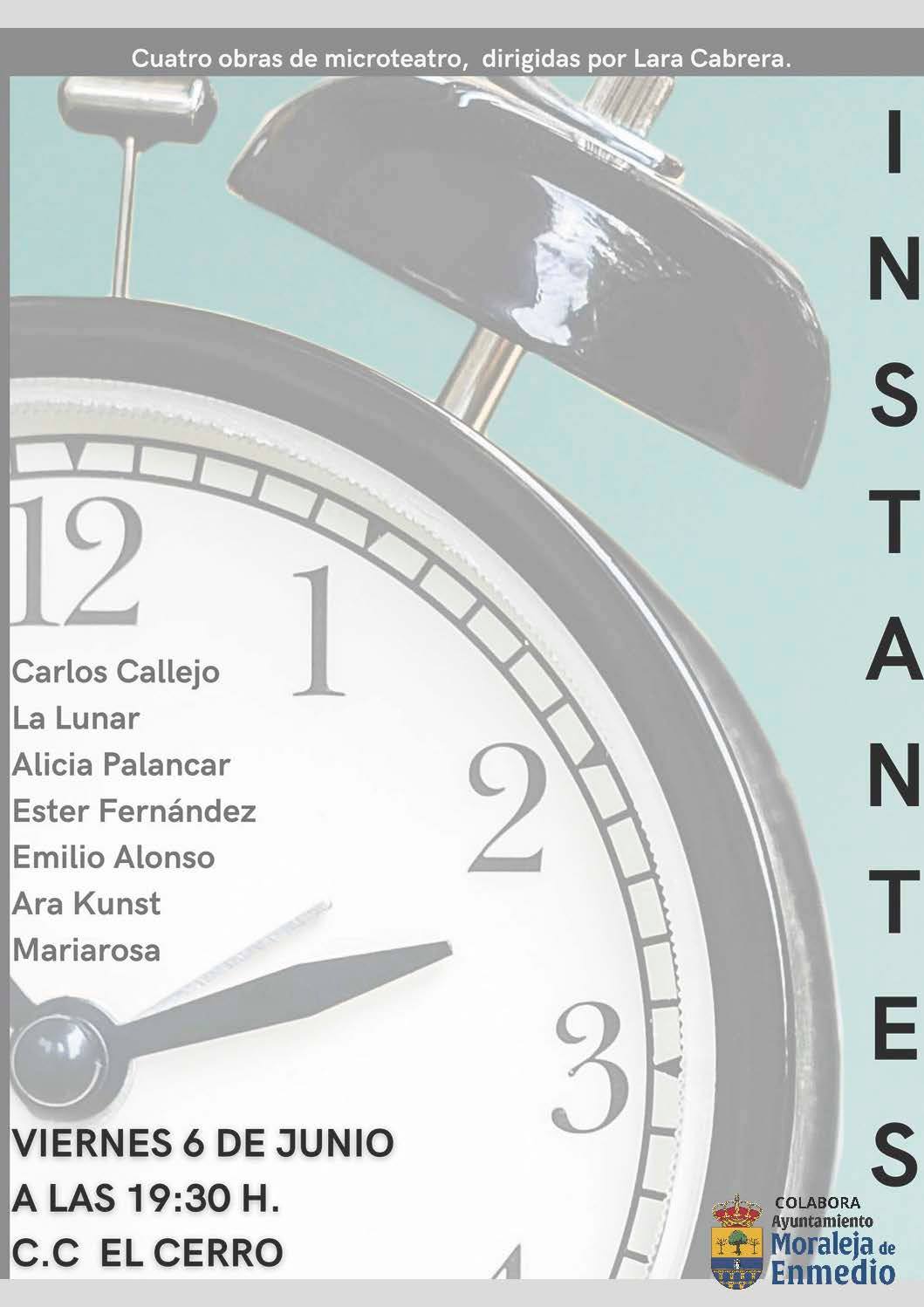 El Ayuntamiento de Moraleja de Enmedio, en colaboración con el Auditorio y Centro Cultural El Cerro, presenta una nueva propuesta cultural para el viernes 6 de junio: Microteatro – Instantes. A partir de las 19:30 horas, el Teatro-Auditorio El Cerro acogerá esta representación que reúne cuatro historias breves, divertidas y conmovedoras.