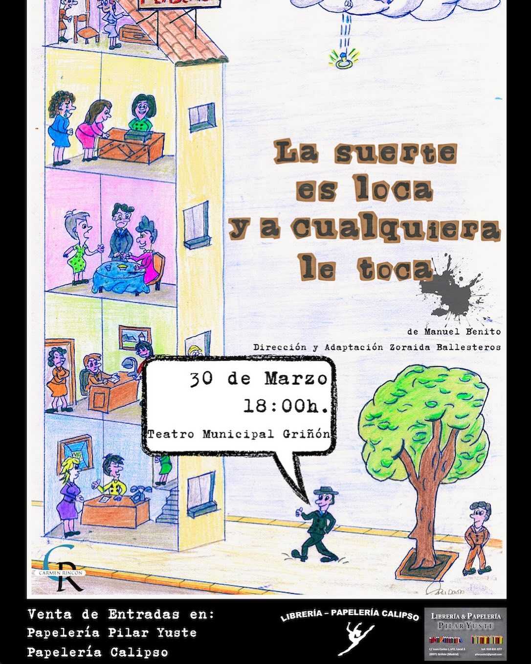 El próximo domingo 30 de marzo, a las 18:00h, el Teatro Municipal de Griñón presenta la obra «La suerte es loca y a cualquiera le toca», una propuesta que promete cautivar al público con su original trama y un humor que hará reflexionar sobre el azar y el destino.