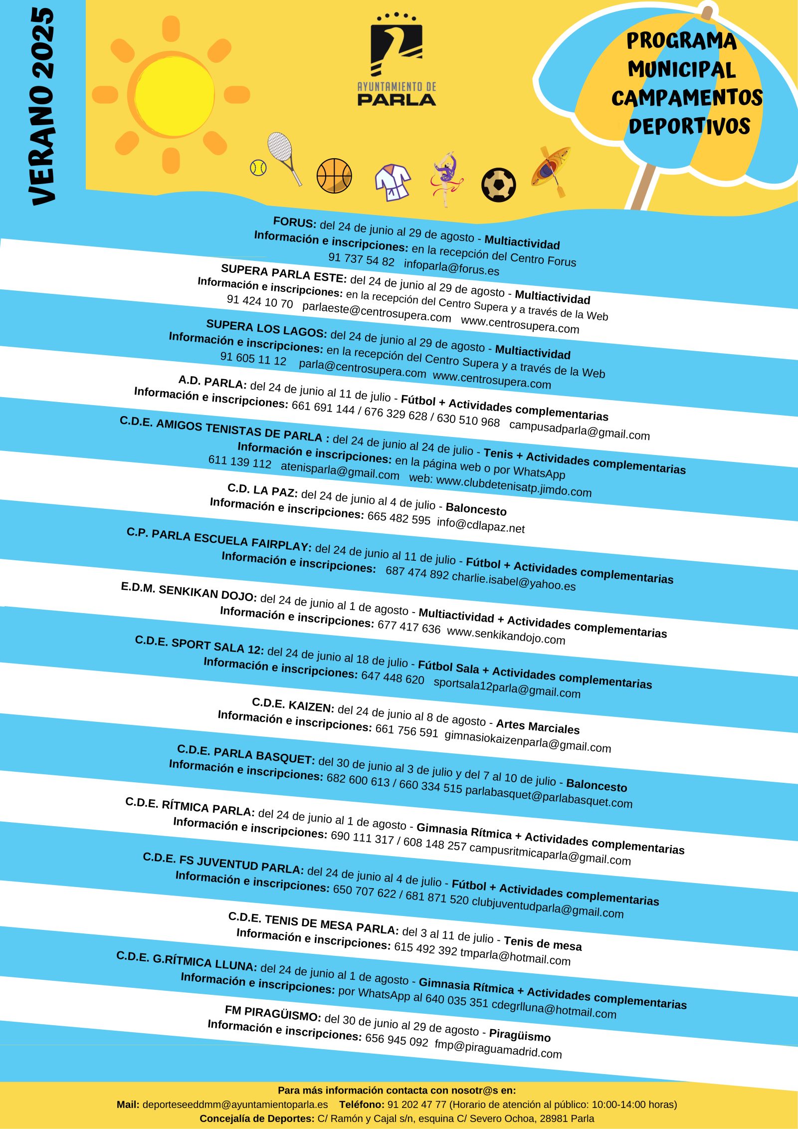El Ayuntamiento de Parla, a través de la Concejalía de Deportes y en colaboración con las Escuelas y Entidades Deportivas Municipales, ha lanzado su oferta de campamentos deportivos para este verano. Dirigidos a menores de entre 4 y 16 años, estos campamentos pretenden ofrecer a los niños y niñas una opción saludable y divertida para disfrutar de sus vacaciones, facilitando además la conciliación familiar durante el largo periodo no lectivo.