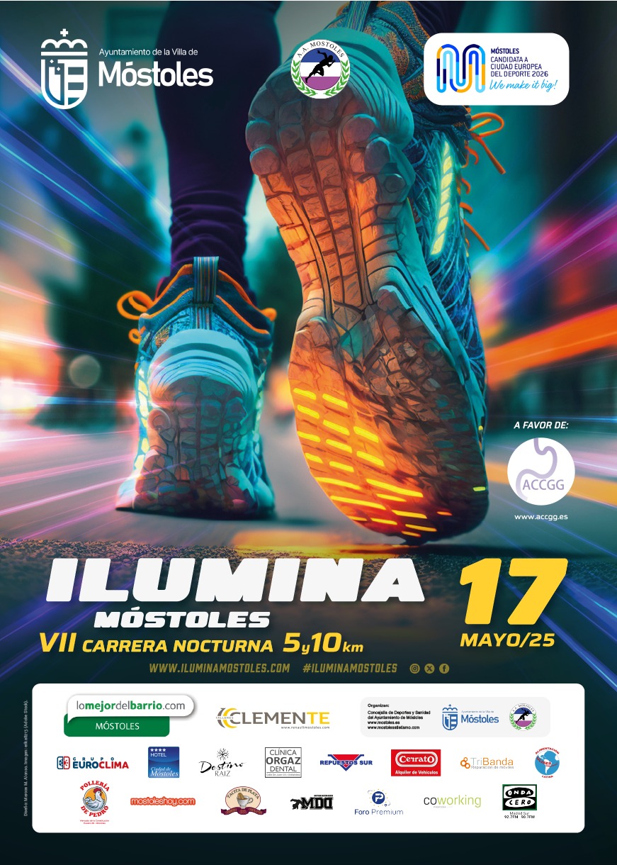 El próximo sábado 17 de mayo, la ciudad de Móstoles será el escenario de la séptima edición de la carrera nocturna «Ilumina Móstoles», que, una vez más, llenará las calles de corredores y luces de neón. La prueba, organizada por el Ayuntamiento de Móstoles a través de la Concejalía de Deportes y Sanidad, en colaboración con la Asociación Atlética Móstoles, ofrece a los participantes la posibilidad de elegir entre dos distancias: 5 km y 10 km, siendo este último un circuito homologado.