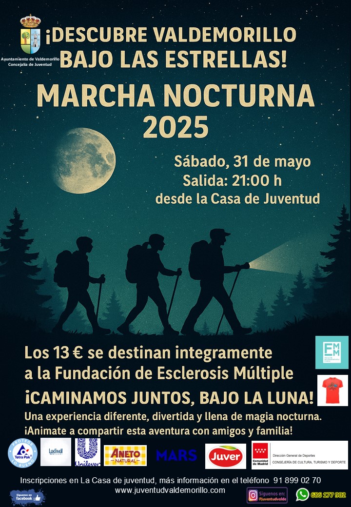 El próximo 31 de mayo, Valdemorillo se vestirá de solidaridad con una nueva edición de su ya tradicional ruta nocturna en favor de los afectados por la esclerosis múltiple. La caminata, organizada por la Concejalía de Juventud, partirá a las 21:00 horas desde la Casa de Juventud y recorrerá un trazado adaptado a todas las edades, reforzando el compromiso del municipio con esta causa.