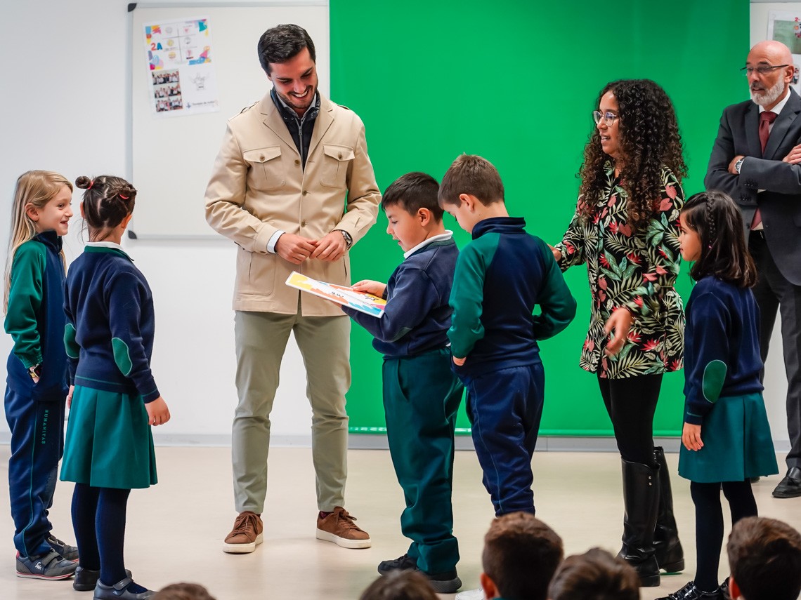 El alcalde, Alejandro Navarro Prieto, y el concejal de Educación, Bienestar e Inmigración, Rubén Martínez, ha visitado esta mañana el colegio Humanitas. Acompañados por su director, Vicente Mangas, el regidor torrejonero y el edil han conocido de primera mano el proyecto “Creamos nuestros propios partidos políticos”, realizado por los alumnos de 2º de Primaria desde las áreas de Ciencias Sociales y Lengua Castellana. A través de este programa, los estudiantes han trabajado en equipo, creando sus propios partidos políticos con propuestas concretas y una visión crítica sobre la sociedad que los rodea. La iniciativa les ha dado la oportunidad de comprender los mecanismos de la democracia, el sistema electoral y la importancia de la participación ciudadana.
