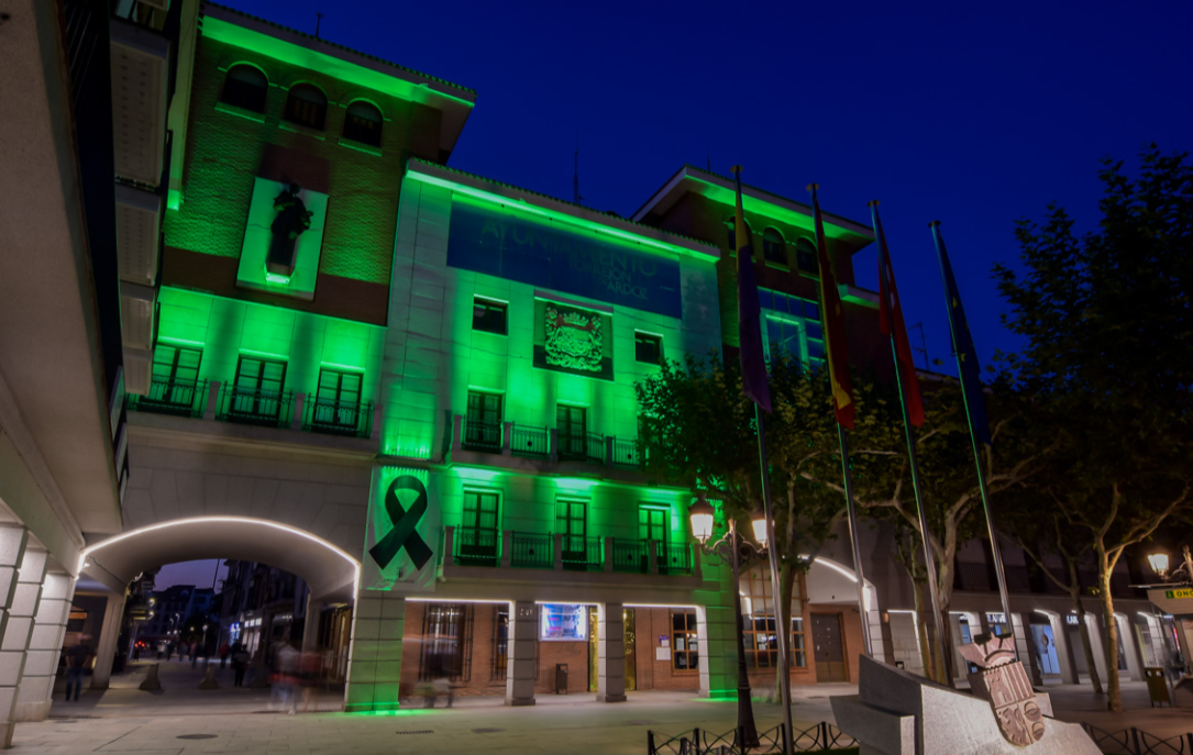 · Además, el Consistorio torrejonero iluminó de verde la fachada del Ayuntamiento la tarde noche del mismo sábado, 28 de febrero, con el objetivo de aumentar la visibilidad de estas patologías, así como la realidad de las personas que conviven con alguna de estas enfermedades