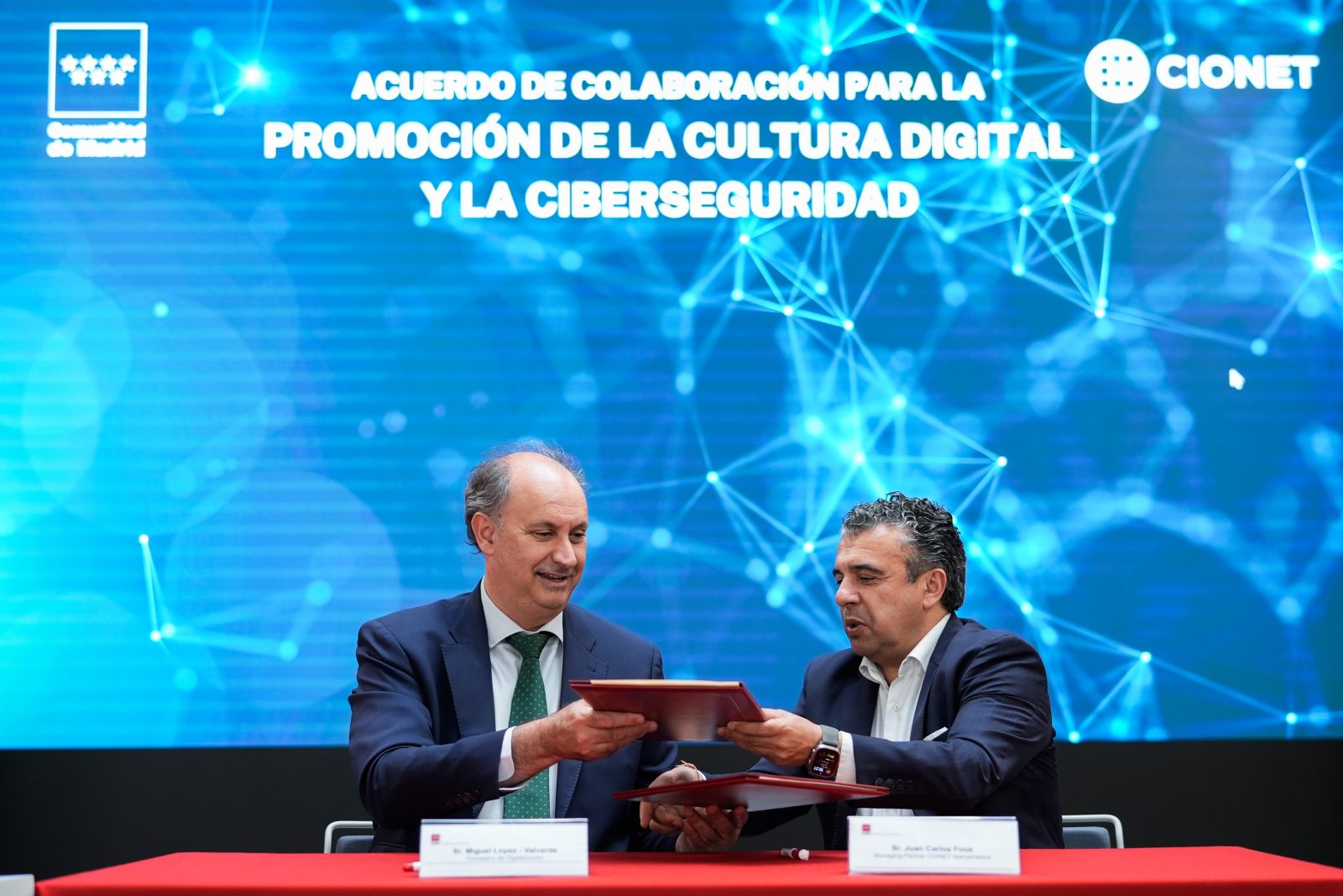 El acuerdo, suscrito por el consejero de Digitalización, Miguel López-Valverde, y el representante de CIONET, Juan Carlos Fouz, tiene una vigencia inicial de tres años y busca fortalecer el entorno digital seguro e innovador de la región. A través de jornadas y actividades en distintos municipios, se promoverá la concienciación y capacitación en ciberseguridad tanto en el sector público como en el privado.