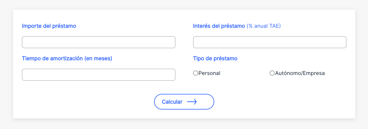 - Elegir el tipo de préstamo: personal, autónomo empresa
