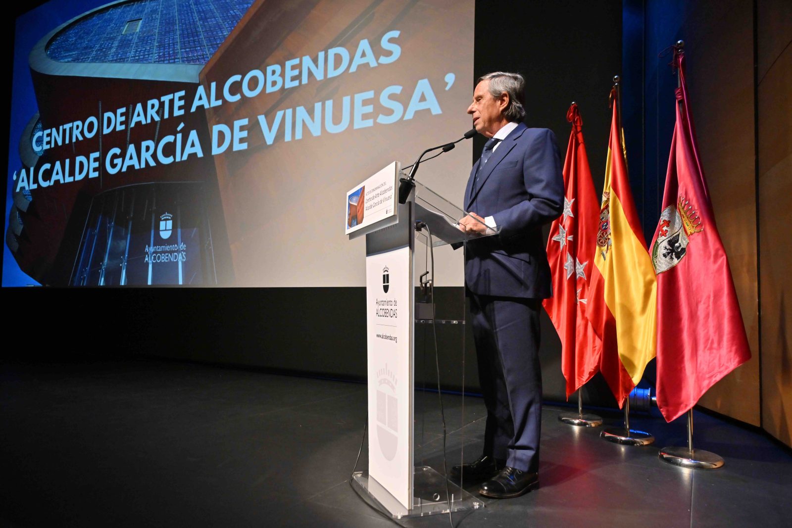El Auditorio Paco de Lucía del Centro de Arte acogió ayer un emotivo homenaje a Ignacio García de Vinuesa, exalcalde de Alcobendas entre 2007 y 2019, en reconocimiento a su legado al frente del Ayuntamiento durante tres legislaturas. El acto sirvió además para oficializar la nueva denominación del espacio cultural, que desde ahora pasa a llamarse Centro de Arte Alcobendas “Alcalde García de Vinuesa”.