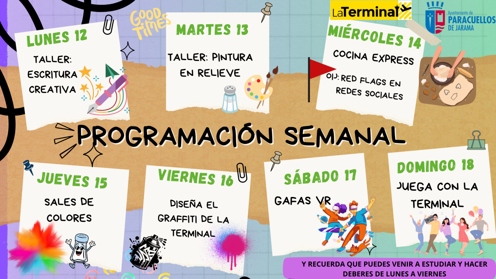 El Centro Joven La Terminal de Paracuellos de Jarama ha dado a conocer su variada programación de actividades para mayores de 12 años, que se desarrollará entre el 12 y el 18 de mayo de 2025.