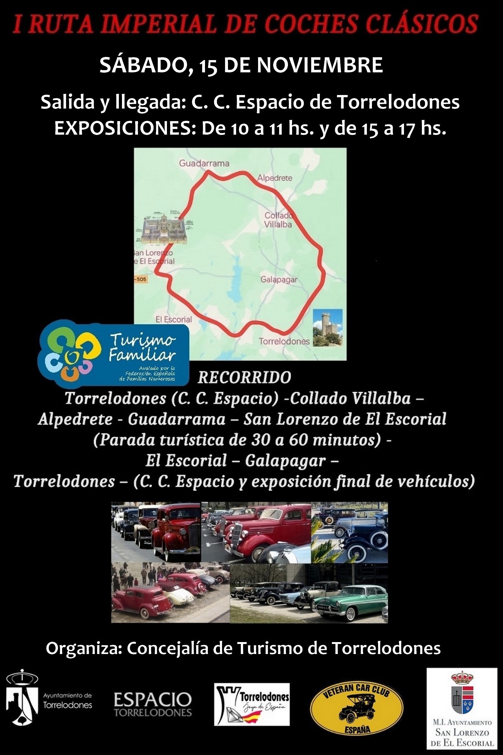 Organizada por la Concejalía de Turismo del Ayuntamiento, la jornada arrancará en el Centro Comercial Espacio Torrelodones donde , de 10:00 a 11:00 h , el público podrá disfrutar de una exposición estática de vehículos clásicos . A partir de las 11:00 h, la caravana partirá en dirección a la sierra, recorriendo Torrelodones,
