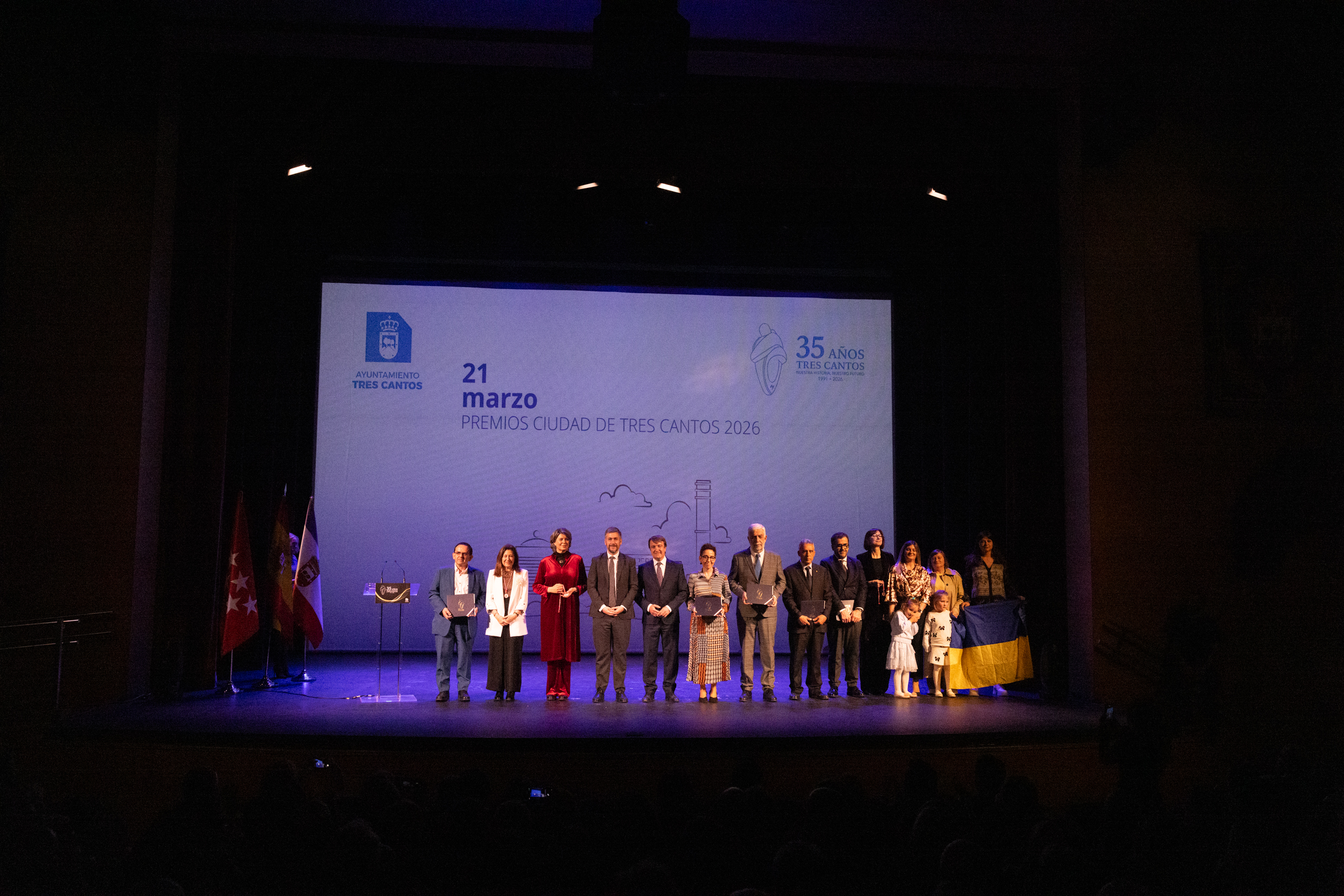 El Ayuntamiento de Tres Cantos reconoció, durante la tarde del pasado sábado, la labor de ocho entidades y personalidades destacadas del ámbito nacional en la celebración de la XII Gala de entrega de los Premios Ciudad de Tres Cantos, celebrada en el Teatro Municipal del Centro Cultural Adolfo Suárez, que registró un lleno total.
