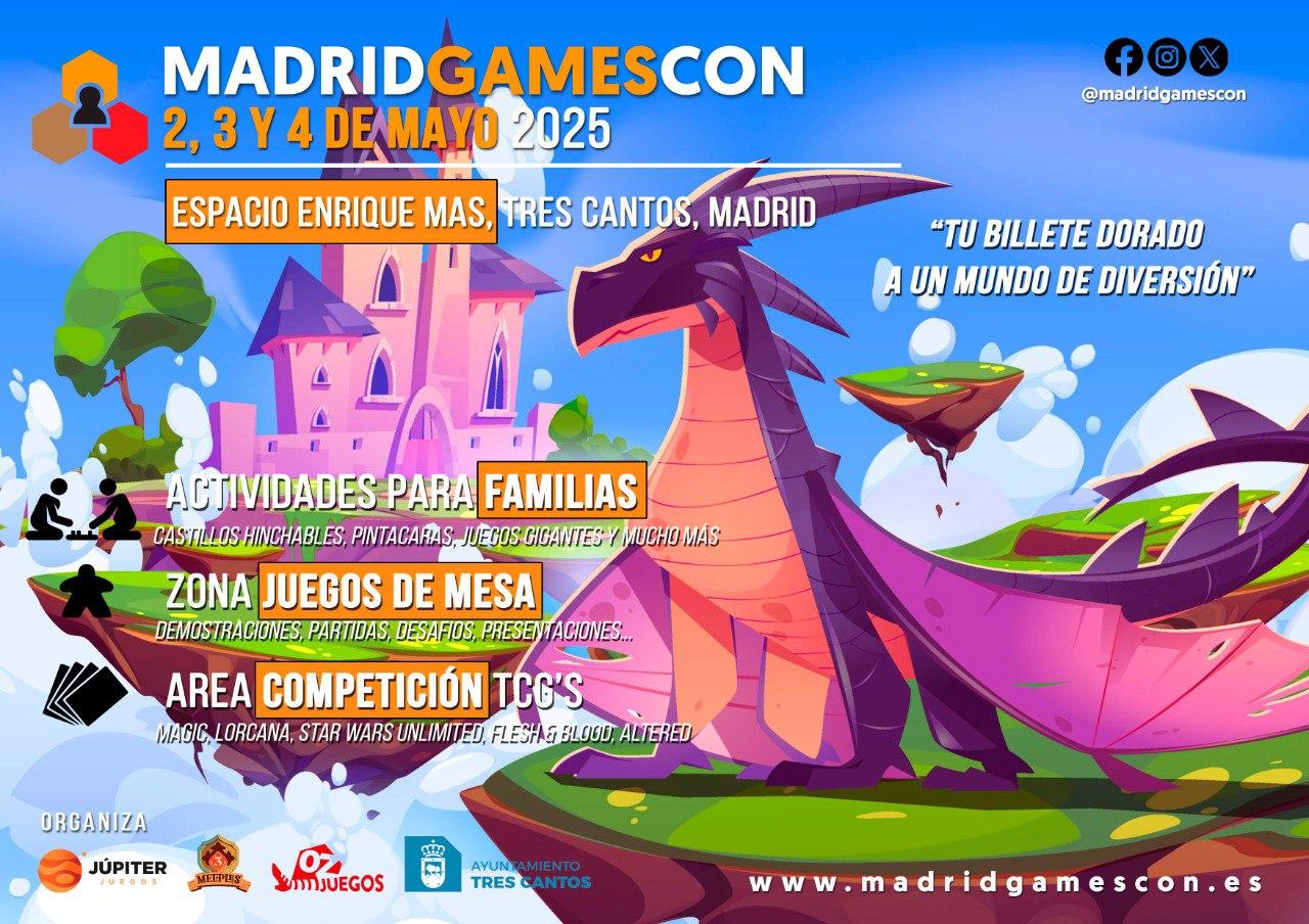 El Espacio Enrique Mas de Tres Cantos acogerá del 2 al 4 de mayo la MadridGamesCon, una cita imprescindible para los amantes de los juegos de mesa. En colaboración con el Ayuntamiento, el evento reunirá a más de 400 participantes de todas las edades en 1.500 m² dedicados al ocio lúdico.