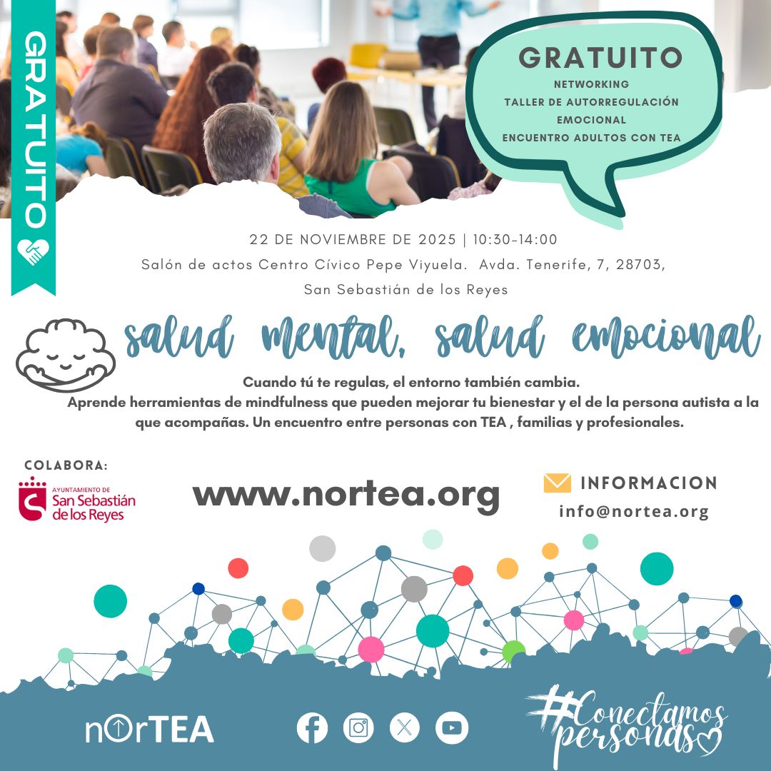 y espacios de intercambio orientados a fortalecer la salud mental en un entorno accesible y de apoyo mutuo. La inscripción es gratuita y puede realizarse a través del este enlace. Este tipo de iniciativas reflejan el compromiso del municipio y de la Asociación NorTEA, entidad organizadora, con la promoción de la inclusión, la diversidad y el bienestar de las personas con autismo y sus familias.