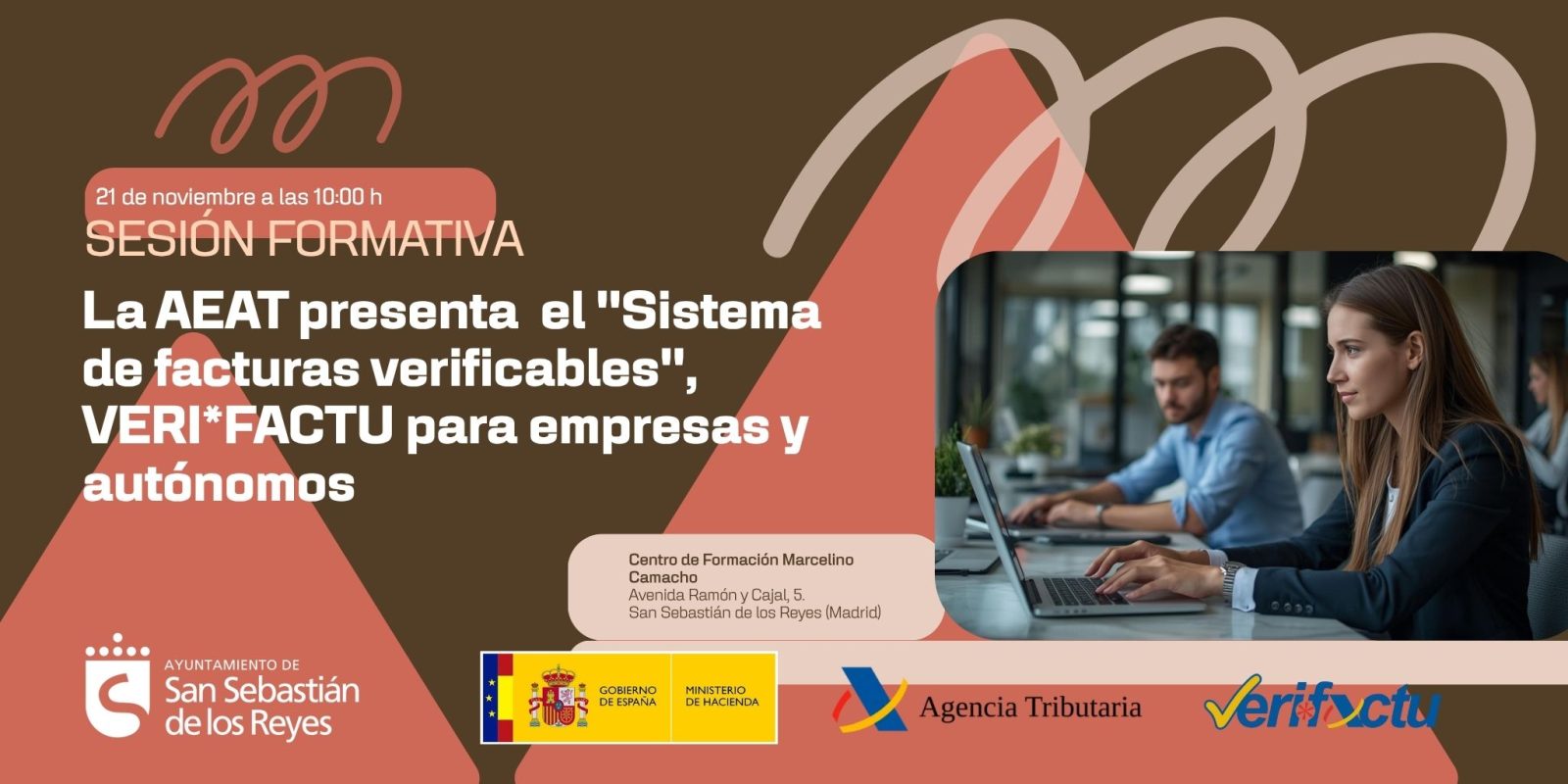 San Sebastián de los Reyes, 5 de noviembre de 2025.- El próximo 21 de noviembre a las 10:00 h., el Ayuntamiento de San Sebastián de los Reyes, en colaboración con la Agencia Estatal de Administración Tributaria (AEAT), celebrará una sesión formativa dirigida a empresas y trabajadores autónomos para explicar el funcionamiento y las implicaciones del nuevo sistema de facturación electrónica VERIFACTU. El encuentro tendrá lugar en el salón de actos del Centro de Formación Marcelino Camacho (Avenida Ramón y Cajal, 5) y se desarrollará durante una hora y media aproximadamente. VERIFACTU es un sistema impulsado por la Agencia Tributaria con el objetivo de reforzar la transparencia y prevenir el fraude fiscal. Este nuevo modelo obligará a que los programas de facturación envíen los registros a la AEAT de forma automática y en tiempo real, garantizando la trazabilidad de las operaciones.