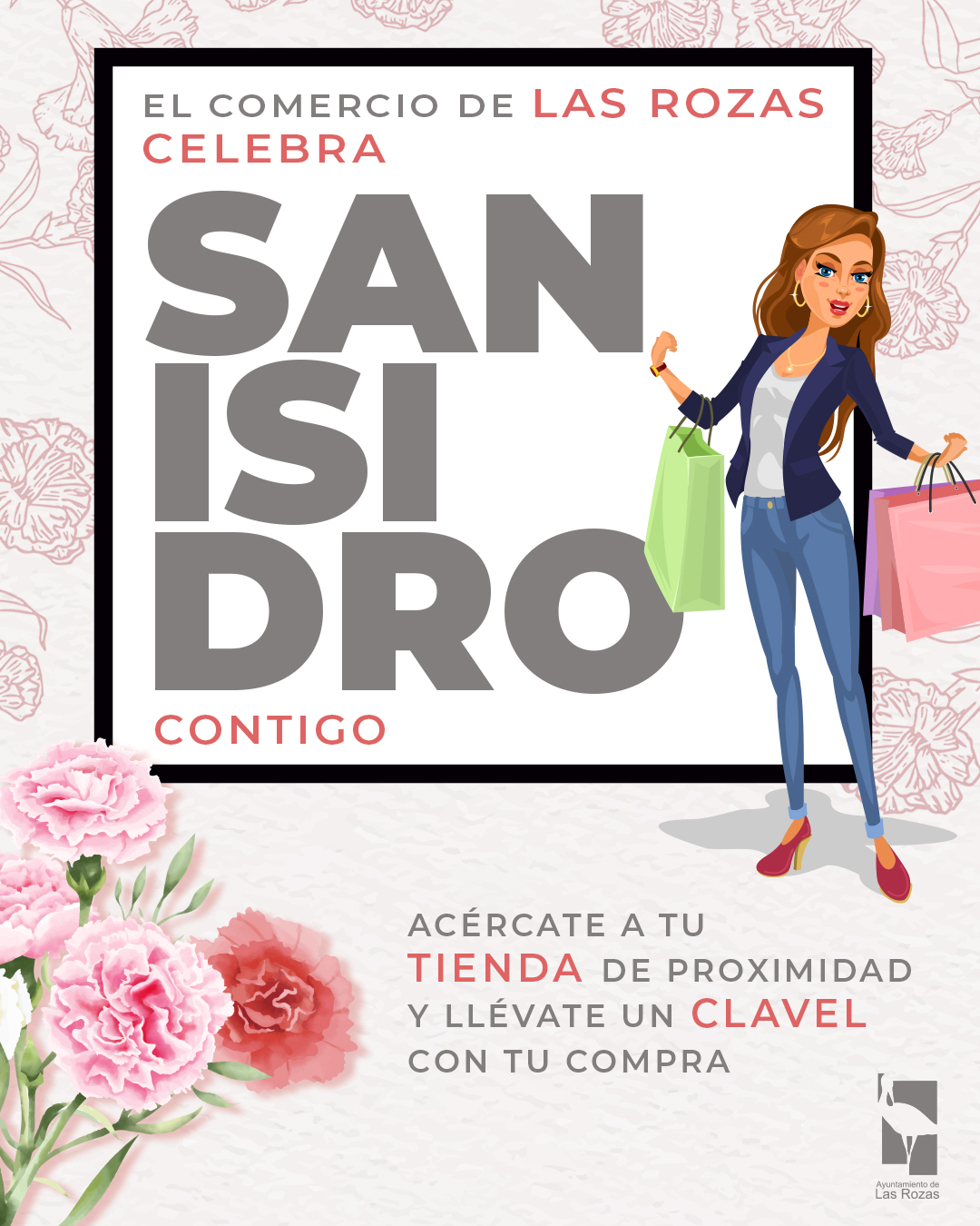 En una iniciativa promovida por la Concejalía de Comercio, el Ayuntamiento de Las Rozas ha decidido repartir 5.000 claveles entre los comercios de proximidad y centros comerciales del municipio con motivo de la festividad de San Isidro, que se celebrará mañana, 15 de mayo.