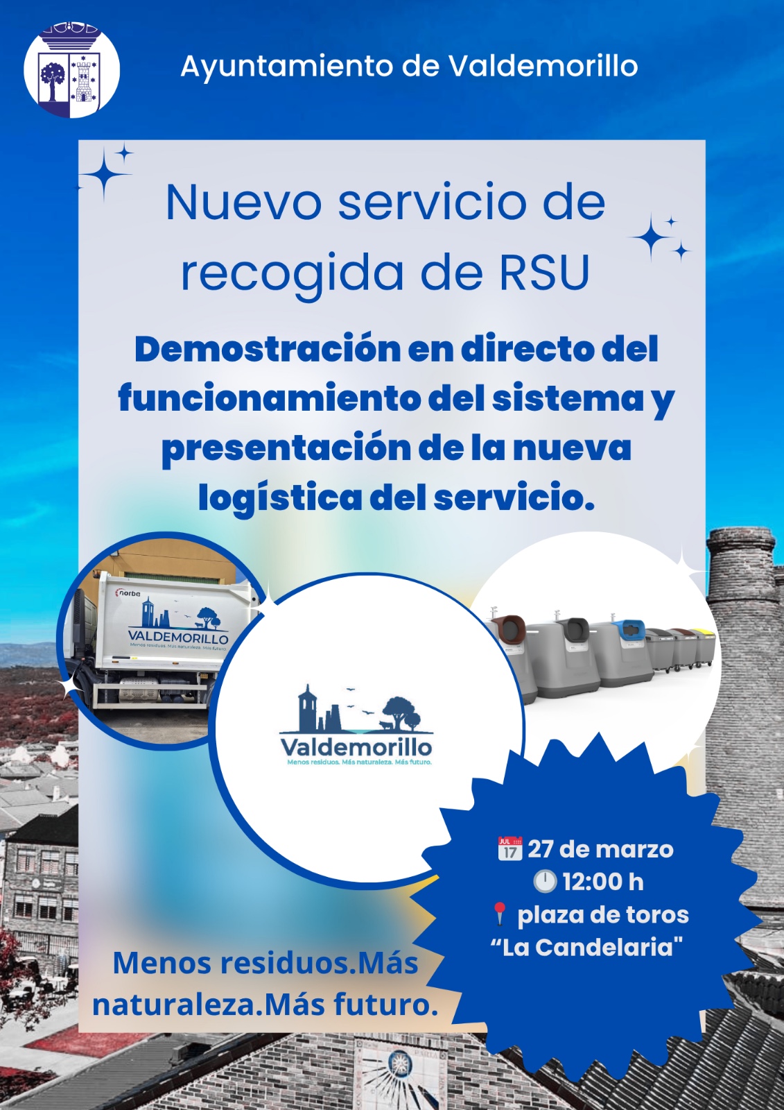 De gran interés se presenta el acto organizado por el Ayuntamiento de Valdemorillo, a través de la concejalía de Seguridad, Medio Ambiente y Mantenimiento Urbano, para dar a conocer con detalle y también mediante demostraciones en la práctica las múltiples ventajas y beneficios que depara la culminación del proceso de implantación seguido para dotar al municipio del nuevo servicio integral y tecnológico que ya se encarga de la recogida de residuos sólidos urbanos (RSU), incorporando la novedad de la recogida de poda puerta a puerta y proporcionando con esta y demás mejoras una mayor efectividad, rapidez y operatividad del mismo en todo el municipio, tanto en el casco urbano como en las urbanizaciones distribuidas por todo el término.