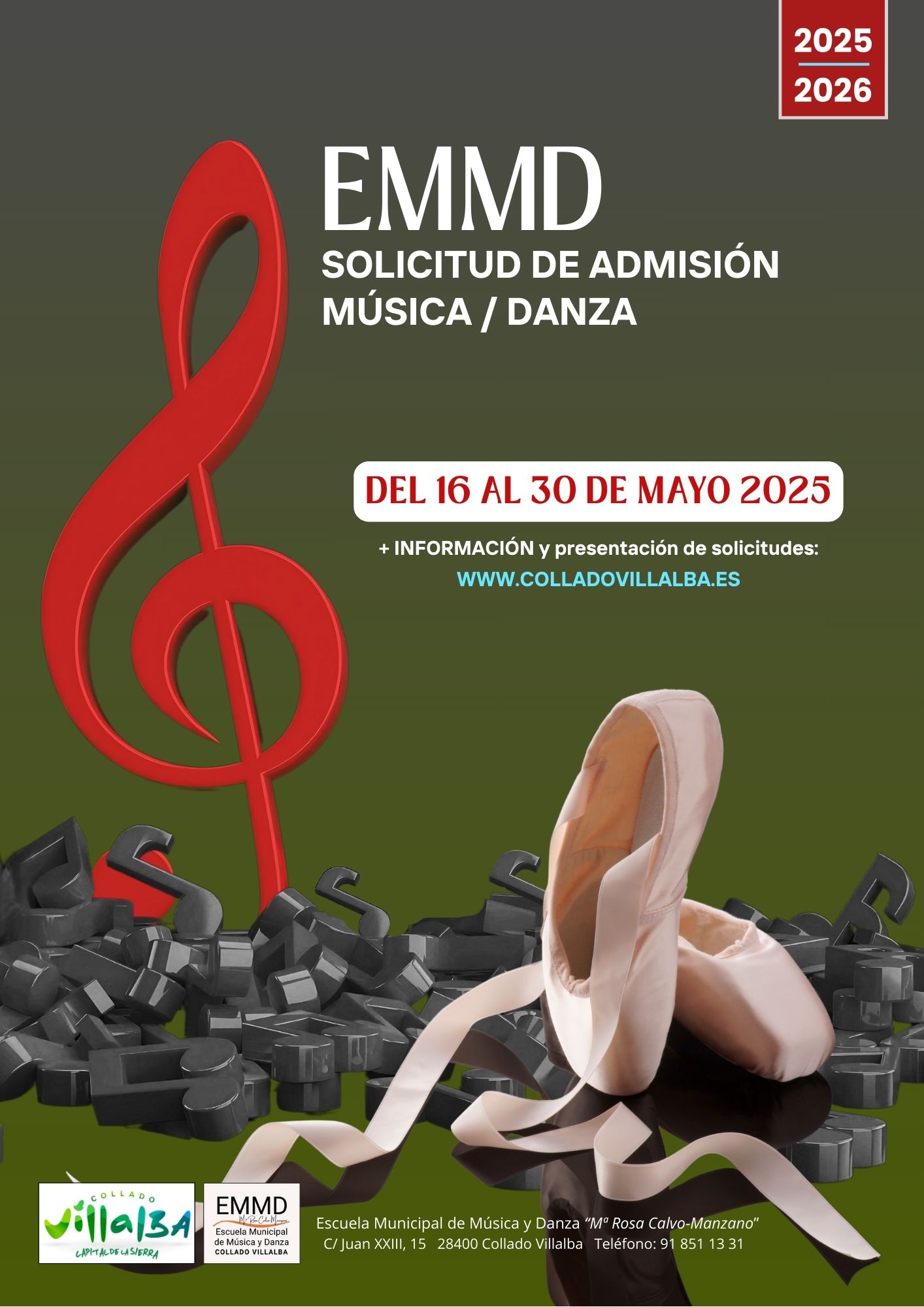 La Escuela Municipal de Música y Danza de Collado Villalba abre el próximo 16 de mayo el plazo de inscripción para la solicitud de plazas para el curso 2025-2026. Los interesados podrán inscribirse hasta el 30 de mayo a través de la página web del Ayuntamiento, en un proceso completamente online.
