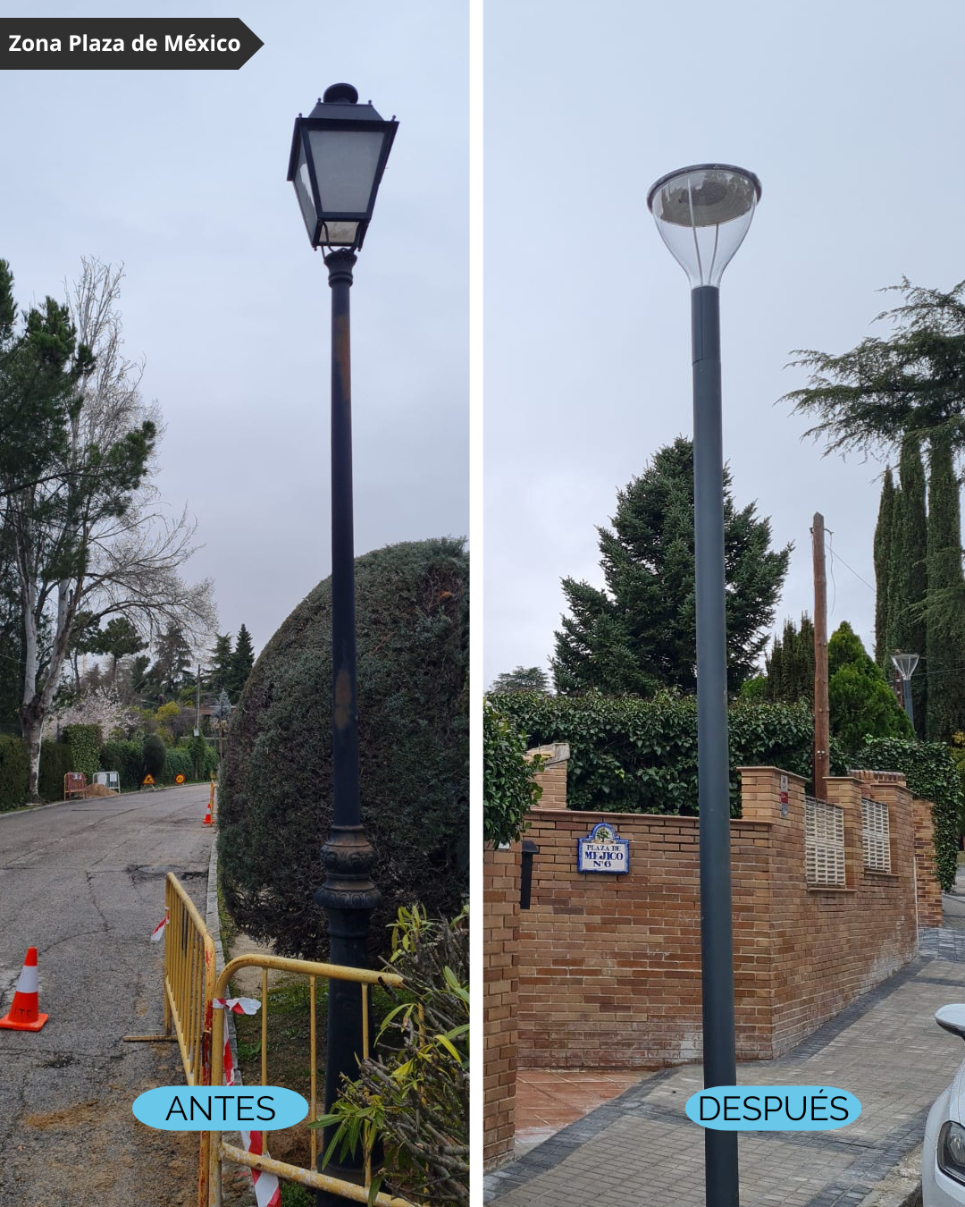 Las mejoras incluyen la instalación de un sistema de iluminación eficiente y moderno. Se están colocando nuevas canalizaciones para el alumbrado público, junto con cimentaciones para nuevas columnas y luminarias con tecnología LED, que cuentan con un sistema de telegestión punto a punto. Este sistema permitirá controlar de manera individualizada cada luminaria, optimizando su funcionamiento. En la calle Monterrey, desde la calle Jalisco hasta la Plaza de México, se han colocado 17 nuevos puntos de luz, y en una segunda fase se instalarán 13 más.