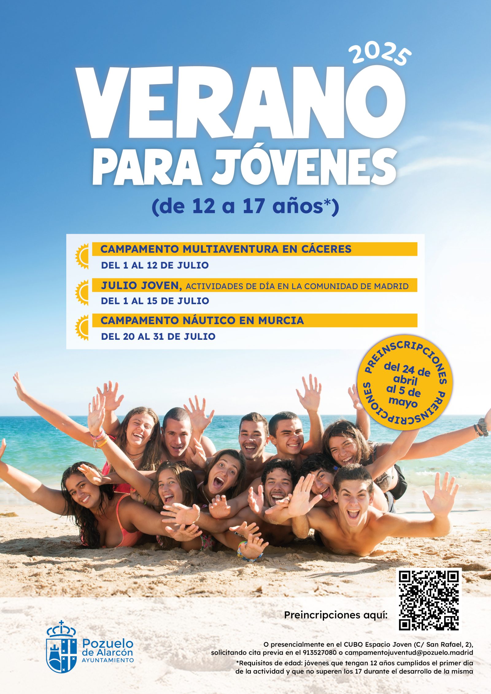 La preinscripción para los campamentos y actividades estará abierta del 24 de abril al 5 de mayo para los jóvenes empadronados y escolarizados en Pozuelo. A partir del 19 de mayo, se abrirá un segundo plazo para el resto de los interesados.