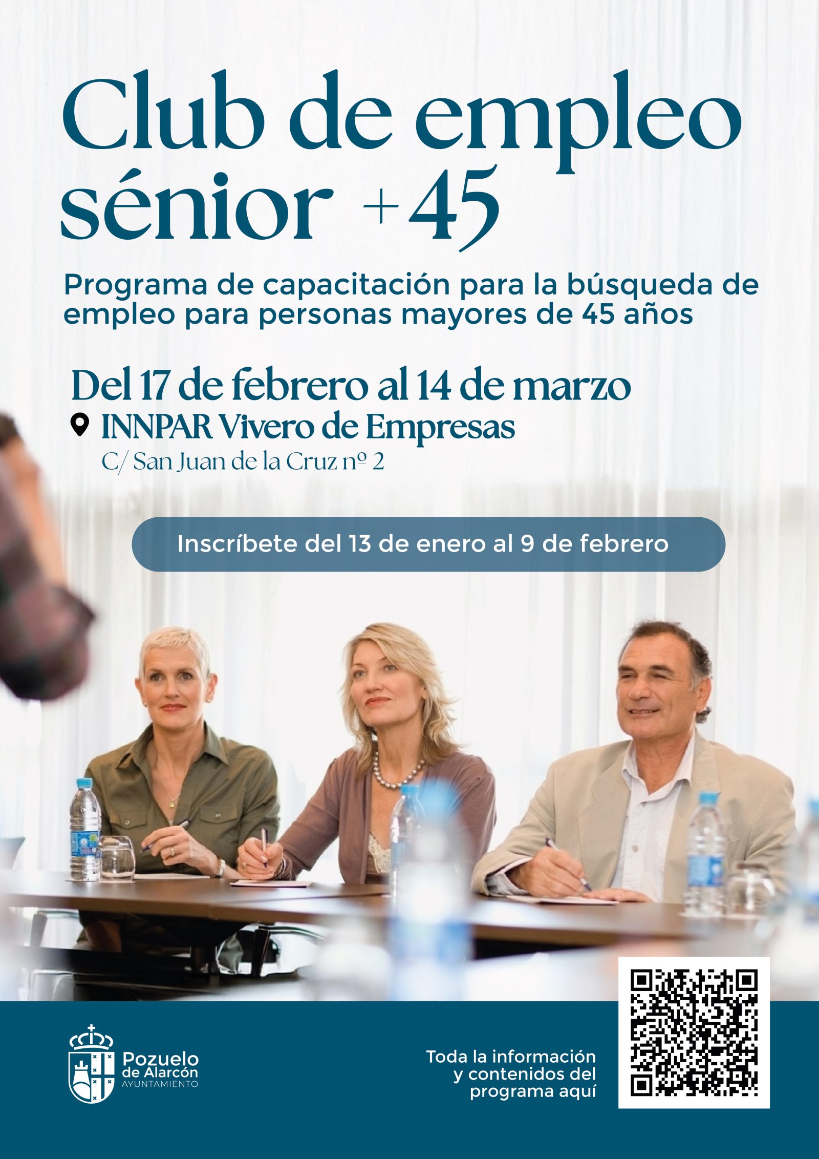 La información completa sobre este programa está disponible a través de este enlace https://www.pozuelodealarcon.org/empleo/candidatos/club-de-empleo-pozuelo-senior-45-2025 y los interesados en participar ya se pueden inscribir. Para ello es necesario estar inscrito en la Agencia Autorizada de Colocación. Las plazas son limitadas.