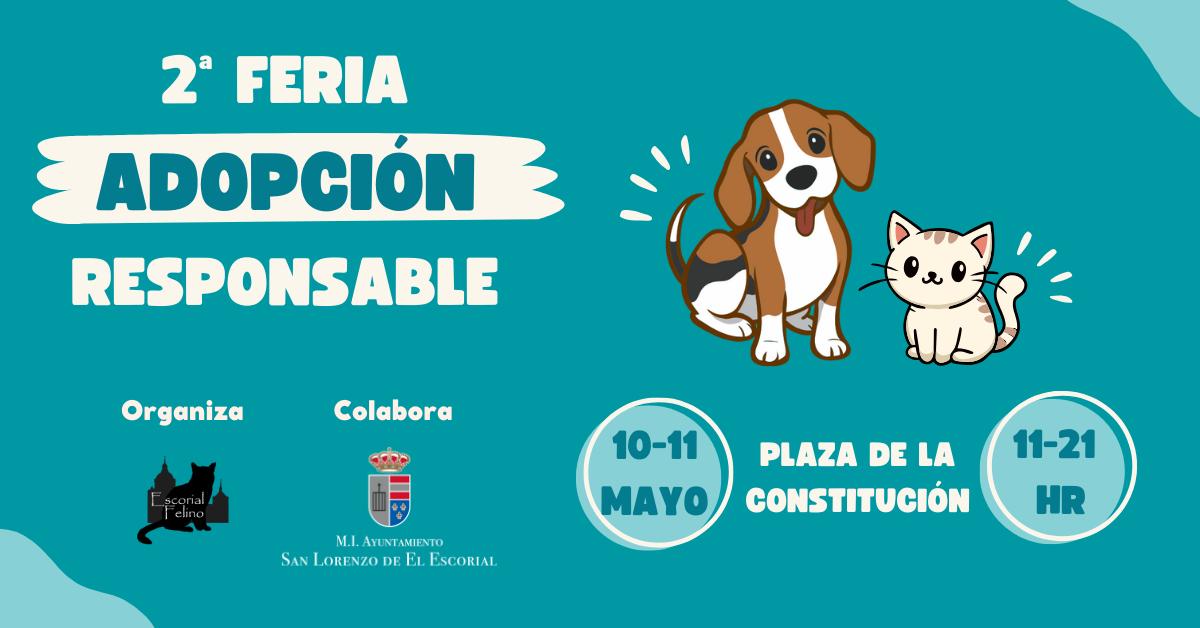 Los próximos días 10 y 11 de mayo, la Plaza de la Constitución de San Lorenzo de El Escorial acogerá la segunda edición de la Feria de Adopción Responsable, un evento impulsado por el Ayuntamiento en colaboración con asociaciones locales con el objetivo de fomentar la tenencia responsable de animales de compañía.