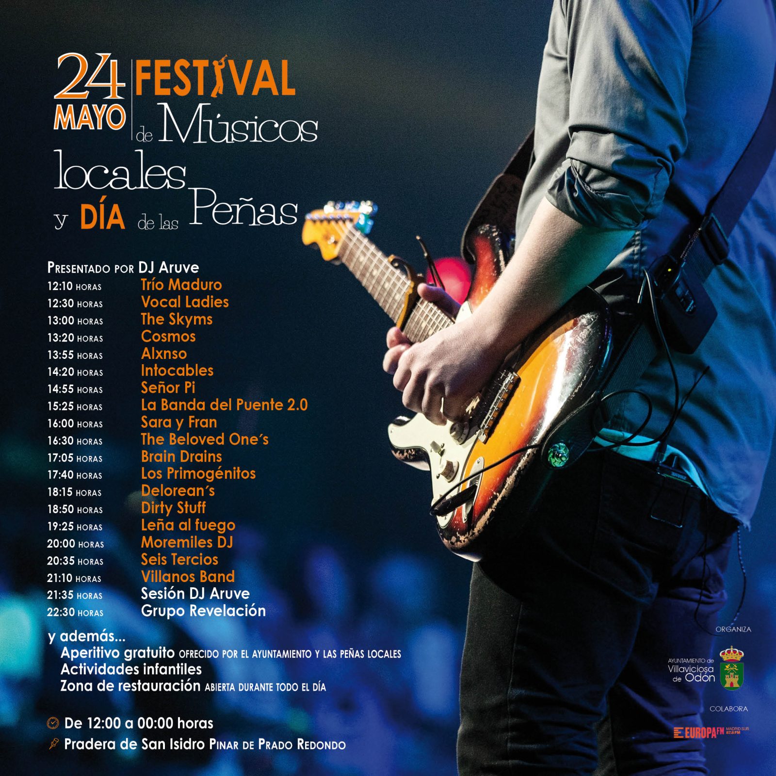 Desde las 12:00 del mediodía hasta la medianoche, un total de 18 bandas y solistas locales actuarán en directo sobre un escenario al aire libre, en un evento que estará conducido por el conocido DJ Aruve y contará con la colaboración de Europa FM Madrid Sur. El festival finalizará con la actuación del Grupo Revelación, que interpretará versiones de los años 80 y 90.