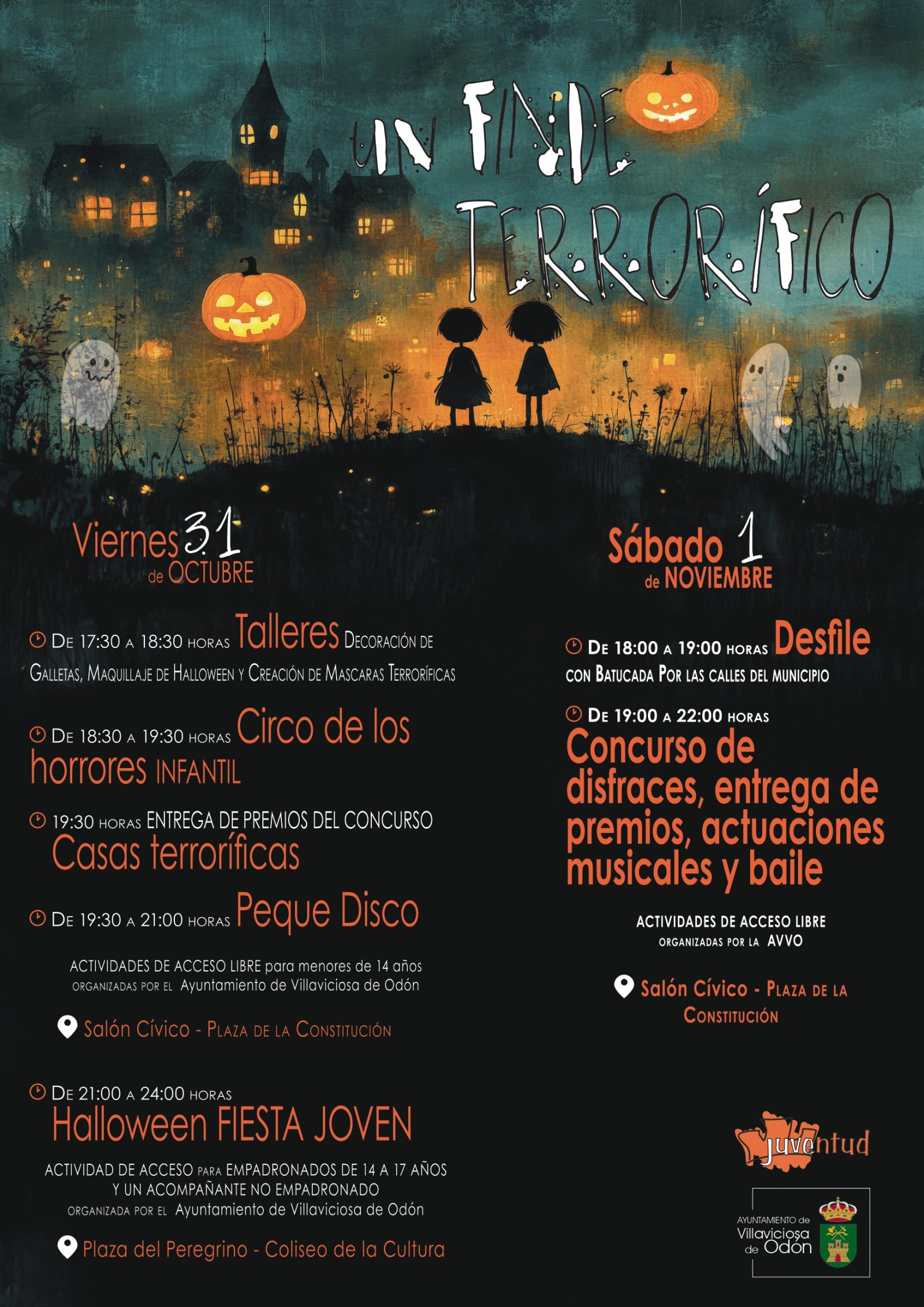 El 31 de octubre se celebrarán talleres, circo de los horrores, peque disco, Fiesta Halloween para jóvenes de entre 14 y 17 años, todo ello organizado por la concejalía de Juventud del Ayuntamiento de Villaviciosa de Odón. Por otra parte, la Asociación de Vecinos organiza el 1 de noviembre multitud de actividades.