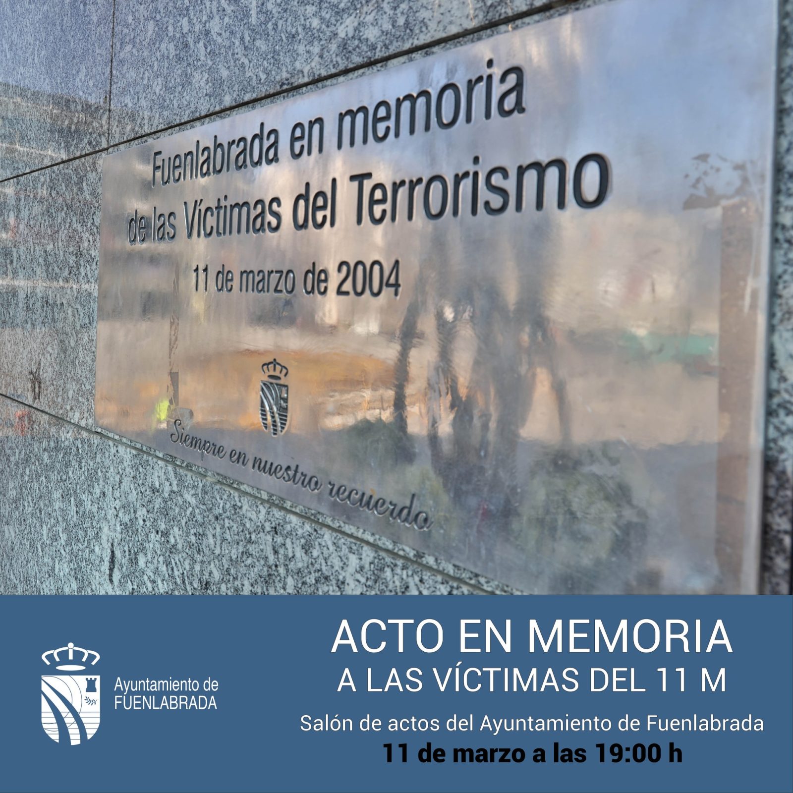 Fuenlabrada recordará hoy, como cada 11M desde 2004, a las víctimas del brutal atentado que costó la vida a 192 personas, entre ellas a 6 vecinos y vecinas de nuestra ciudad.