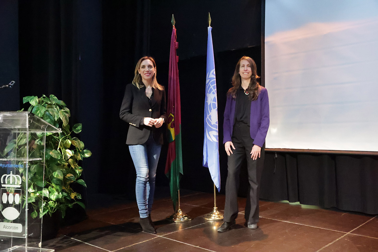 La alcaldesa de Alcorcón, Candelaria Testa, y la jefa de la Oficina de ONU-Habitat en España,