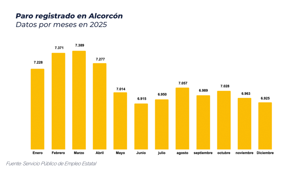 Alcorcón finaliza el año 2025 con 6.925 personas desempleadas en el mes de