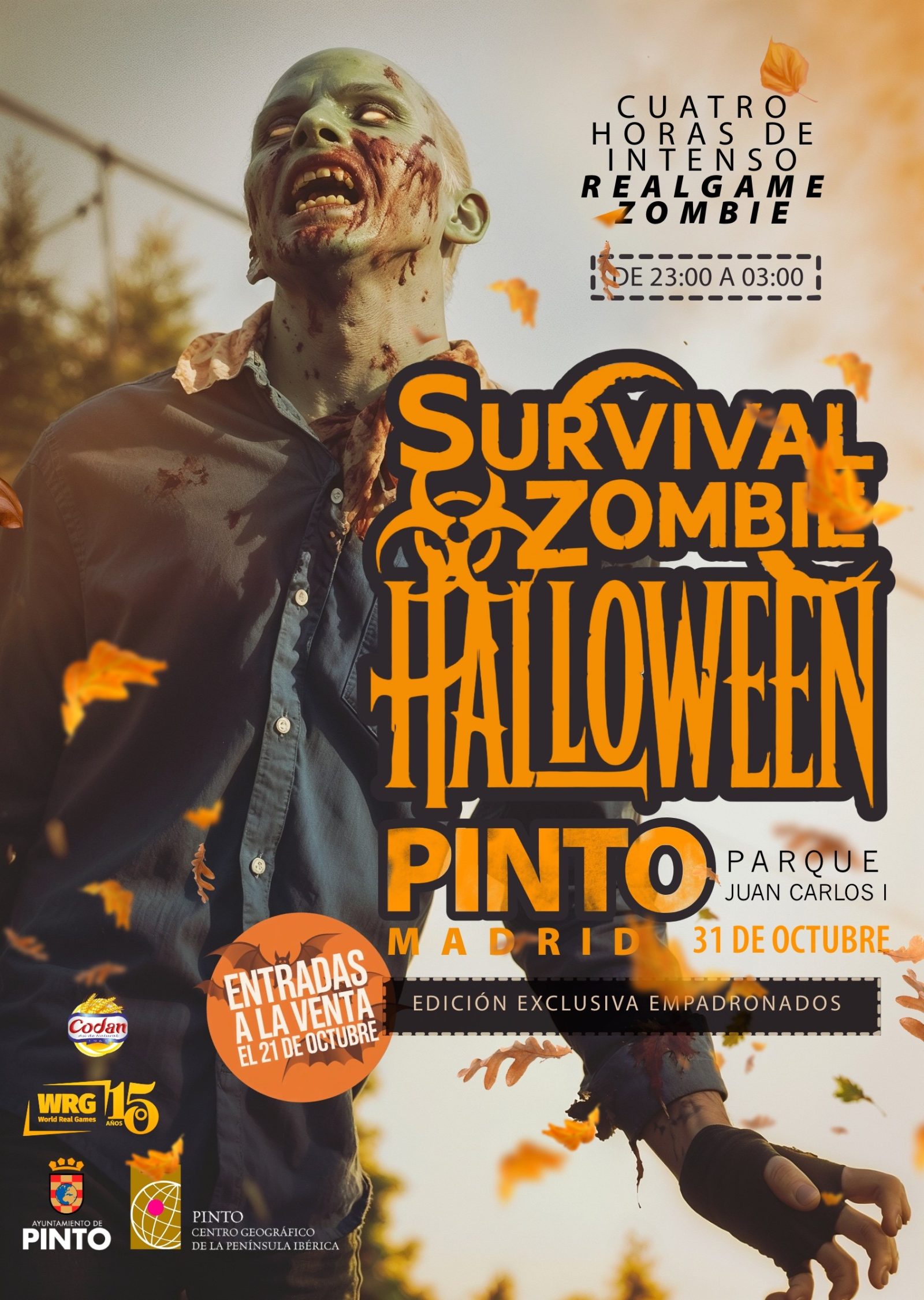 Una programación donde destaca el Survival Zombie del viernes 31 de octubre. Una edición exclusiva para empadronados en Pinto, donde los participantes tendrán que sobrevivir a un apocalipsis sin parangón. De 23:00 a 03:00 h en el Parque Juan Carlos I (capacidad para 750 Personas). Día de venta de entradas el 21 de octubre, a un precio simbólico de 0,01 céntimos en la web: https://survivalzombie.es/survival/pinto-2025.