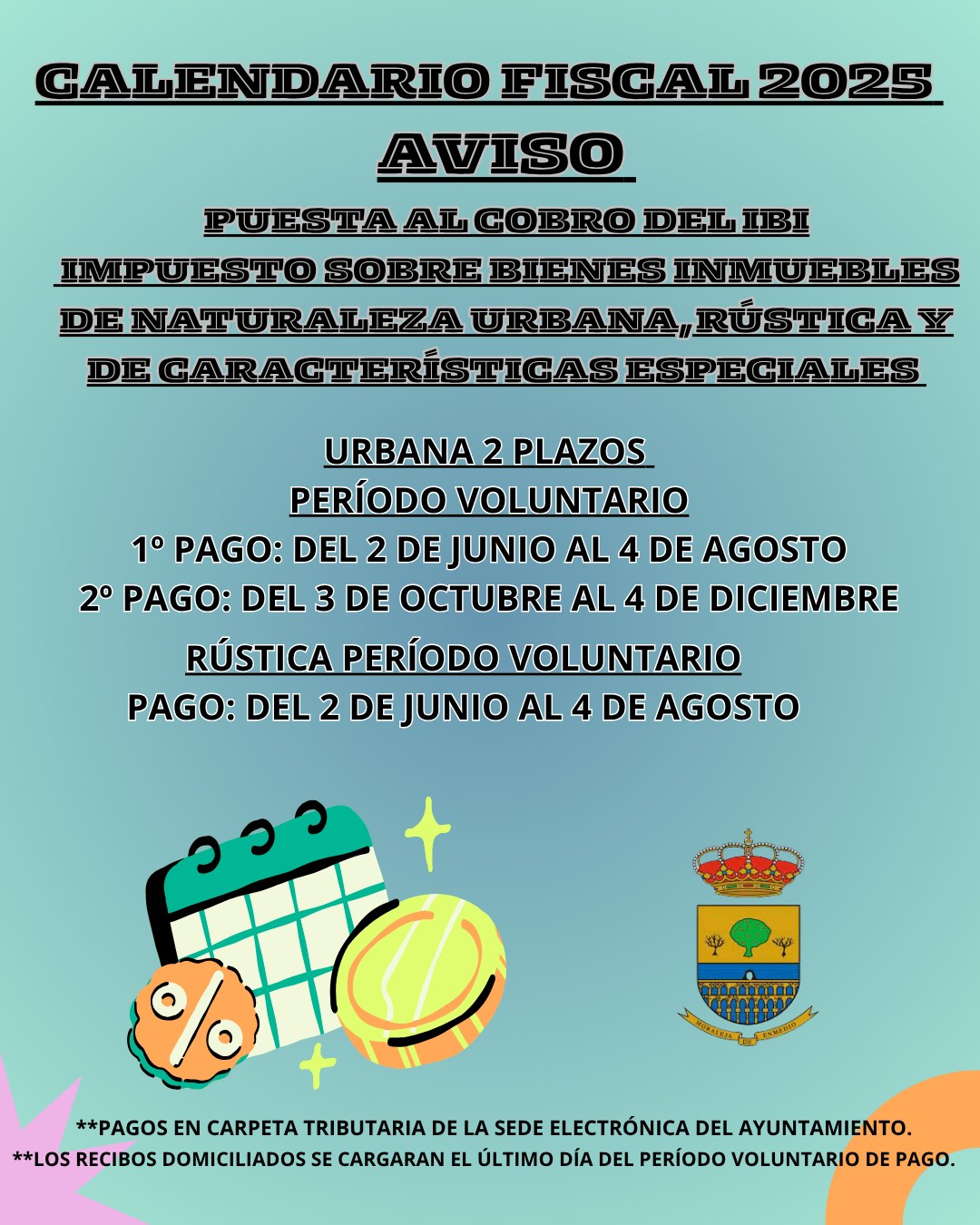 El Ayuntamiento de Moraleja de Enmedio ha informado a los vecinos sobre el inicio del periodo voluntario para el pago del Impuesto sobre Bienes Inmuebles (IBI) correspondiente al ejercicio 2025, tanto para bienes de naturaleza urbana como rústica.