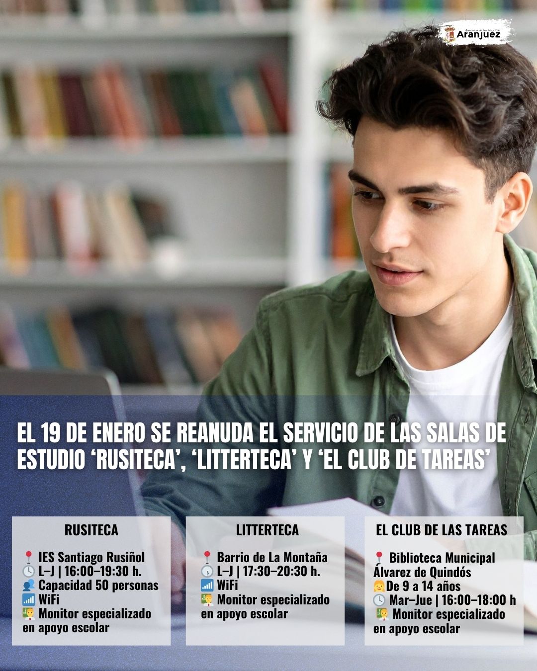 El próximo 19 de enero se reanuda en Aranjuez el servicio de las salas de estudio