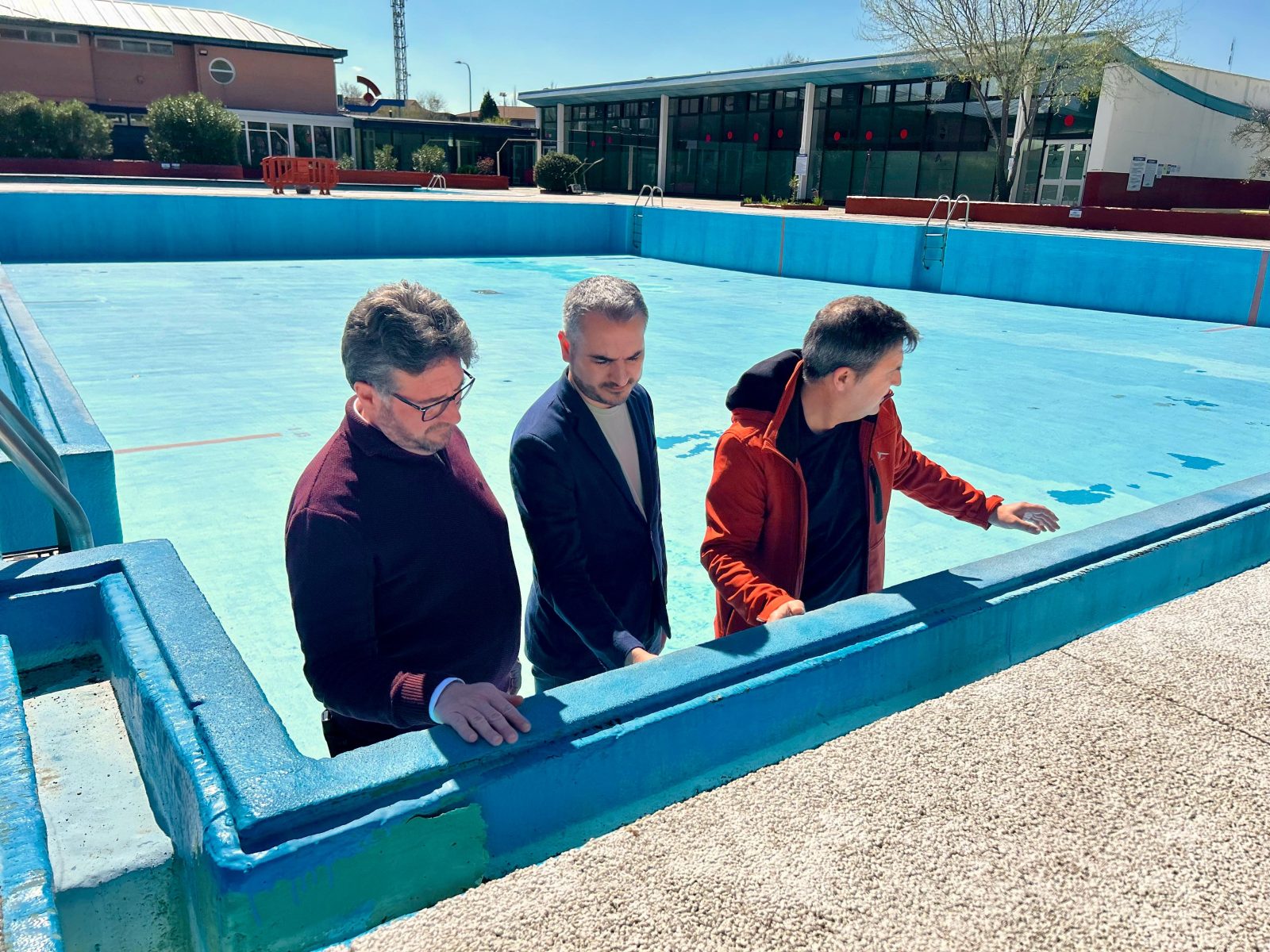 • El Alcalde, Salomón Aguado, y el Concejal de Deportes, Fernando González, visitan la piscina para comprobar in situ los avances en esta materia