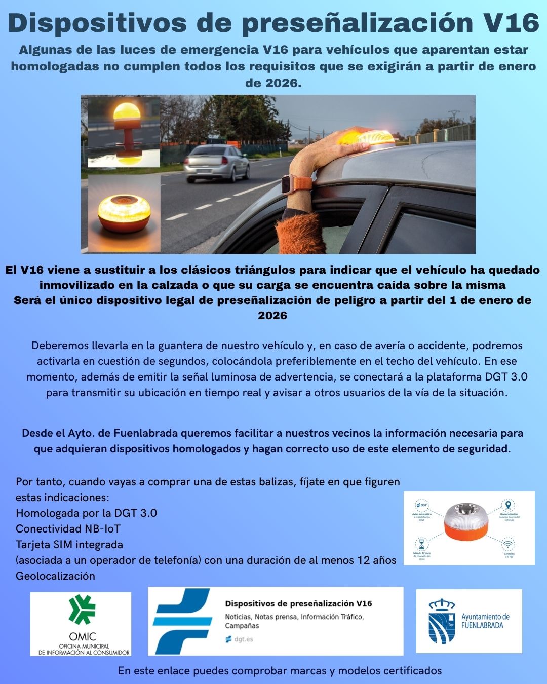 Desde el Ayuntamiento, a través de la Oficina Municipal de Atención al Consumidor (OMIC), se ha puesto en marcha una campaña informativa sobre las luces de emergencia V16 para vehículos que serán obligatorias a partir del 1 de enero de 2026.