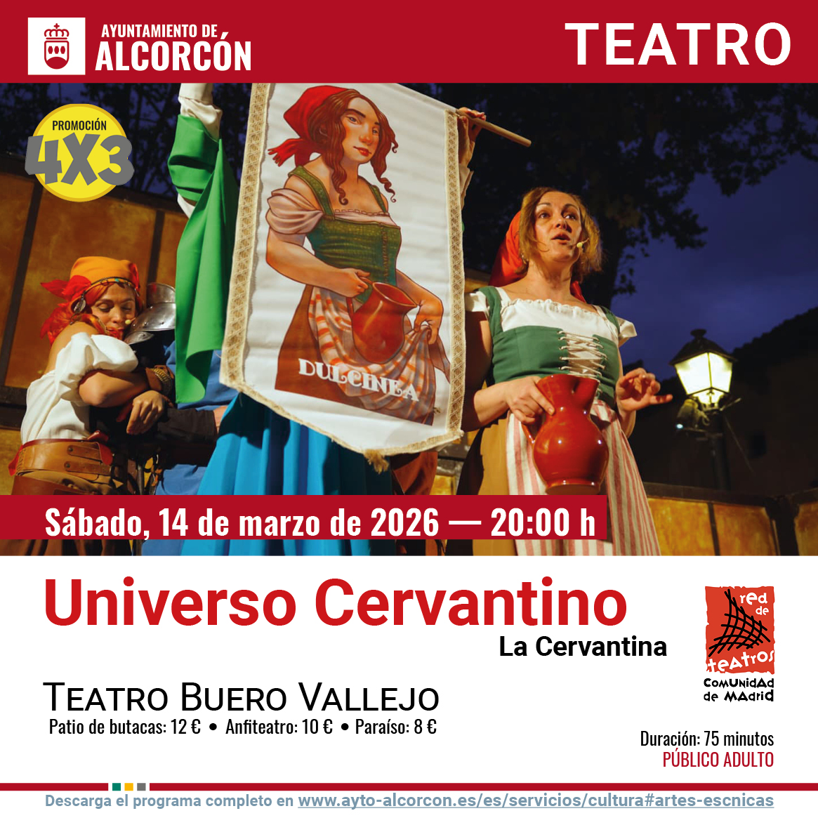 La jornada culminará a las 20 horas en el Teatro Buero Vallejo con ‘La Cervantina. Universo Cervantino’, una comedia teatral en clave de clown en la que seis personajes de las Novelas Ejemplares aparecen inesperadamente en el siglo XXI y emprenden una disparatada búsqueda de su autor, Miguel de Cervantes.