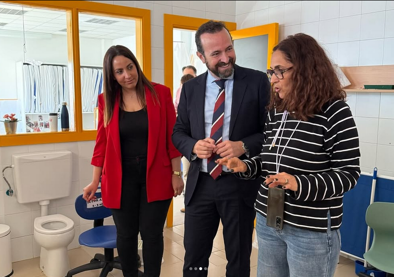 La jornada continuó con una visita al CEIP Santa Teresa, donde fueron recibidos por el equipo directivo del centro. Durante la visita, Fernández Borreguero mostró su interés por las nuevas instalaciones del Primer Ciclo de Educación Infantil, así como por la reciente reforma de las pistas deportivas del centro, que han mejorado las instalaciones para el alumnado.