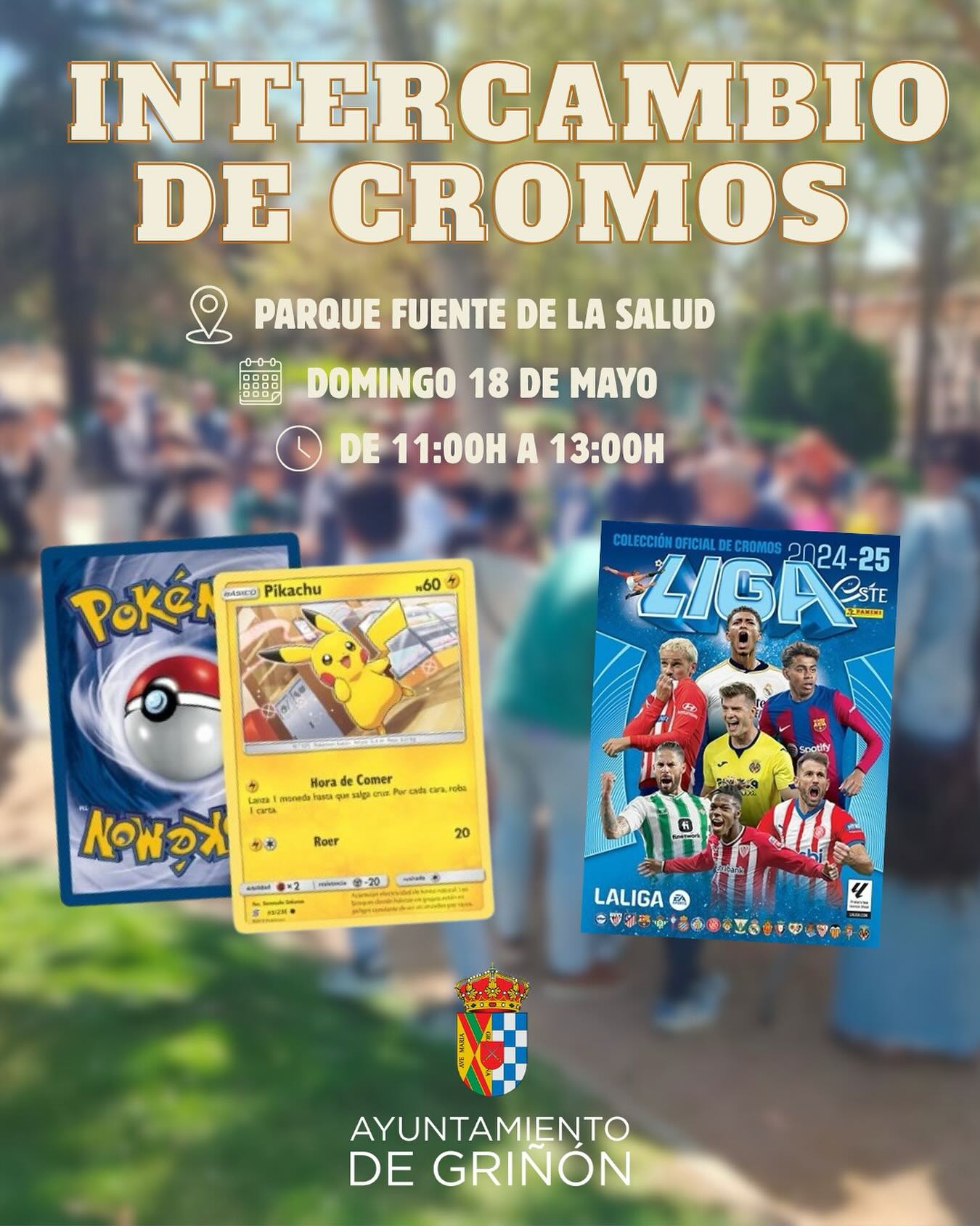 El evento tendrá lugar el domingo 18 de mayo, en el Parque Fuente de la Salud de Griñón, de 11:00 a 13:00 horas. Si te quedaste con ganas de participar en la primera quedada, si aún te faltan cromos para completar tu álbum o si simplemente quieres pasar un buen rato, ¡esta es tu oportunidad!