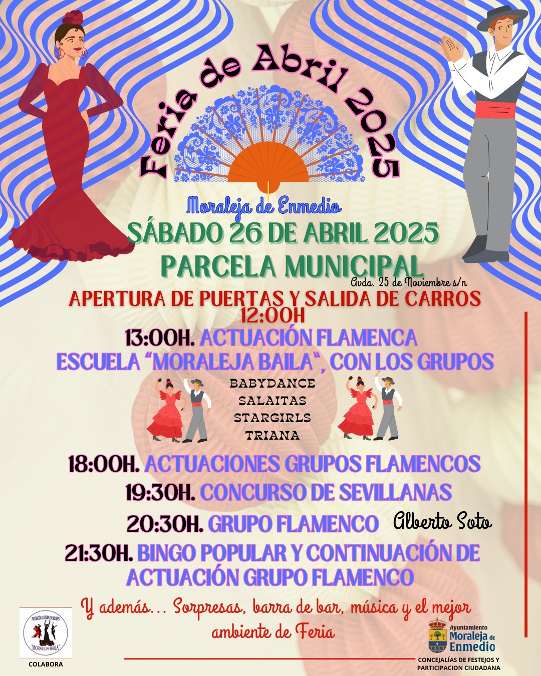 El próximo sábado 26 de abril, la localidad de Moraleja de Enmedio se vestirá de fiesta con la llegada de la esperada Feria de Abril, que promete trasladar a los asistentes al corazón de la famosa Feria de Sevilla. La jornada comenzará a las 12:00 del mediodía, con la apertura de puertas del recinto ferial, donde se podrá disfrutar de un ambiente festivo único.