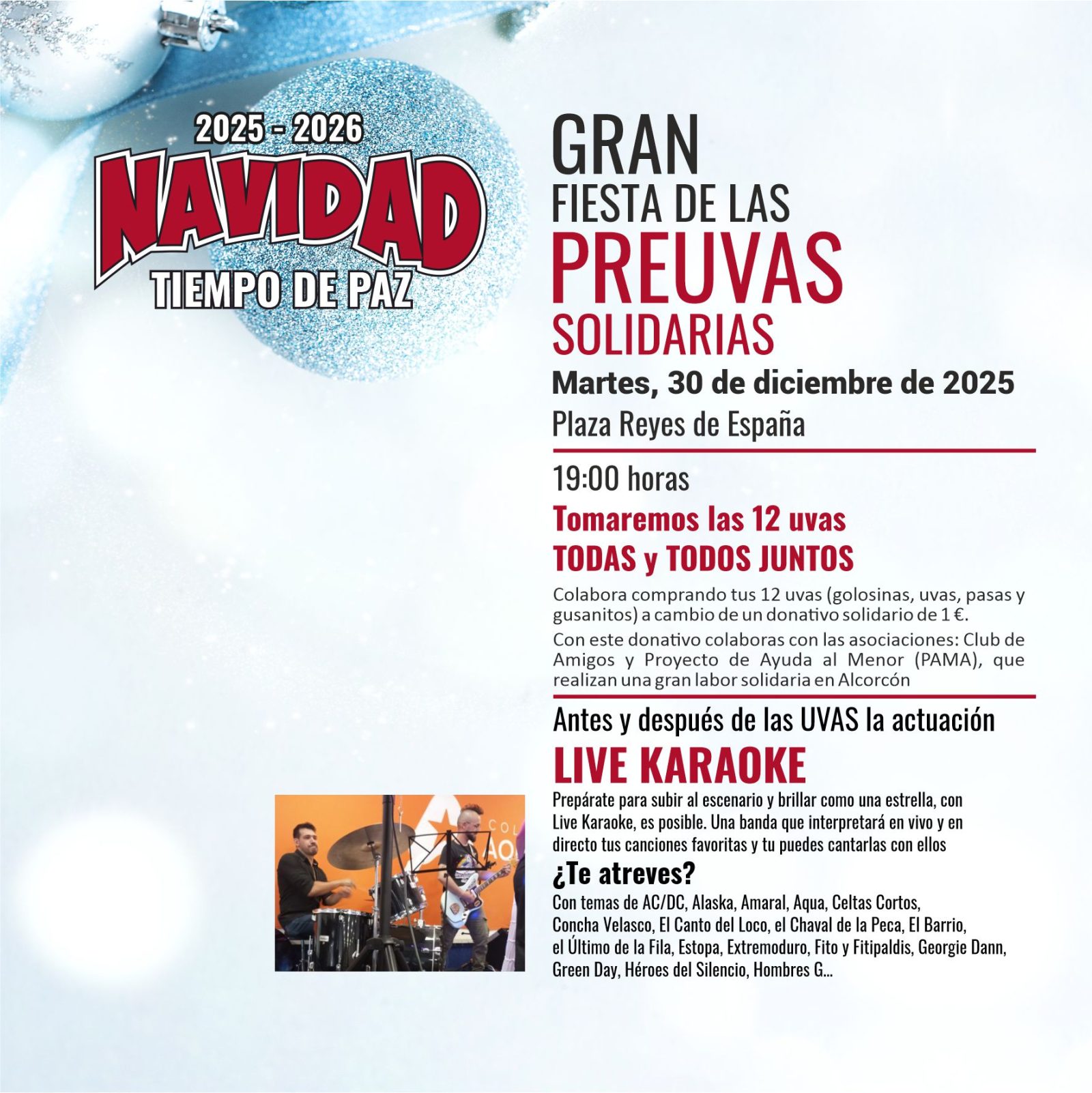 · Las Preuvas Solidarias y la Tardevieja son las citas del programa ‘Tiempo de Paz’, la programación navideña de Alcorcón, para despedir el 2025. Estas actividades se unen a otras propuestas culturales como las del Centro del Títere con ‘Cuento de Navidad (Encapsulando a Dickens)’ o la ópera infantil ‘Hansel y Gretel’.