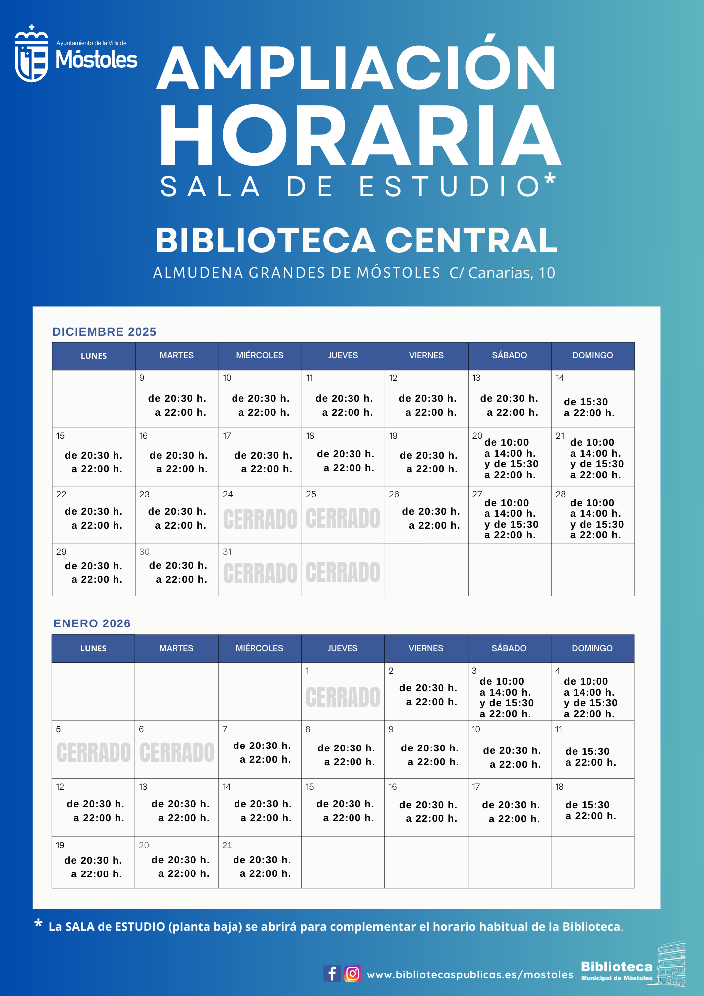 en estas fechas, se ampliará el horario de sala de estudio desde el 9 de diciembre al 21 de