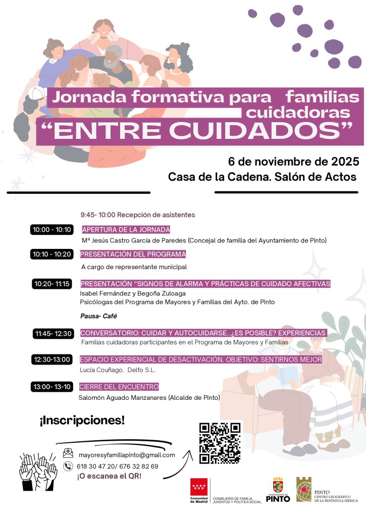 «Celebramos estas dos jornadas para concienciar sobre el valor social de los cuidados y la necesidad de una corresponsabilidad familiar y social para una mejora del bienestar y de la calidad de vida de todas las personas, tanto de quienes cuidan como de quienes son cuidados», ha destacado la Concejal de Familia, María Jesús Castro, que ha animado a participar en estas jornadas que contarán, además, con la presencia del Alcalde de Pinto, Salomón Aguado.